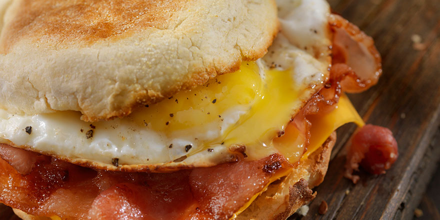 egg and bacon on english muffin
