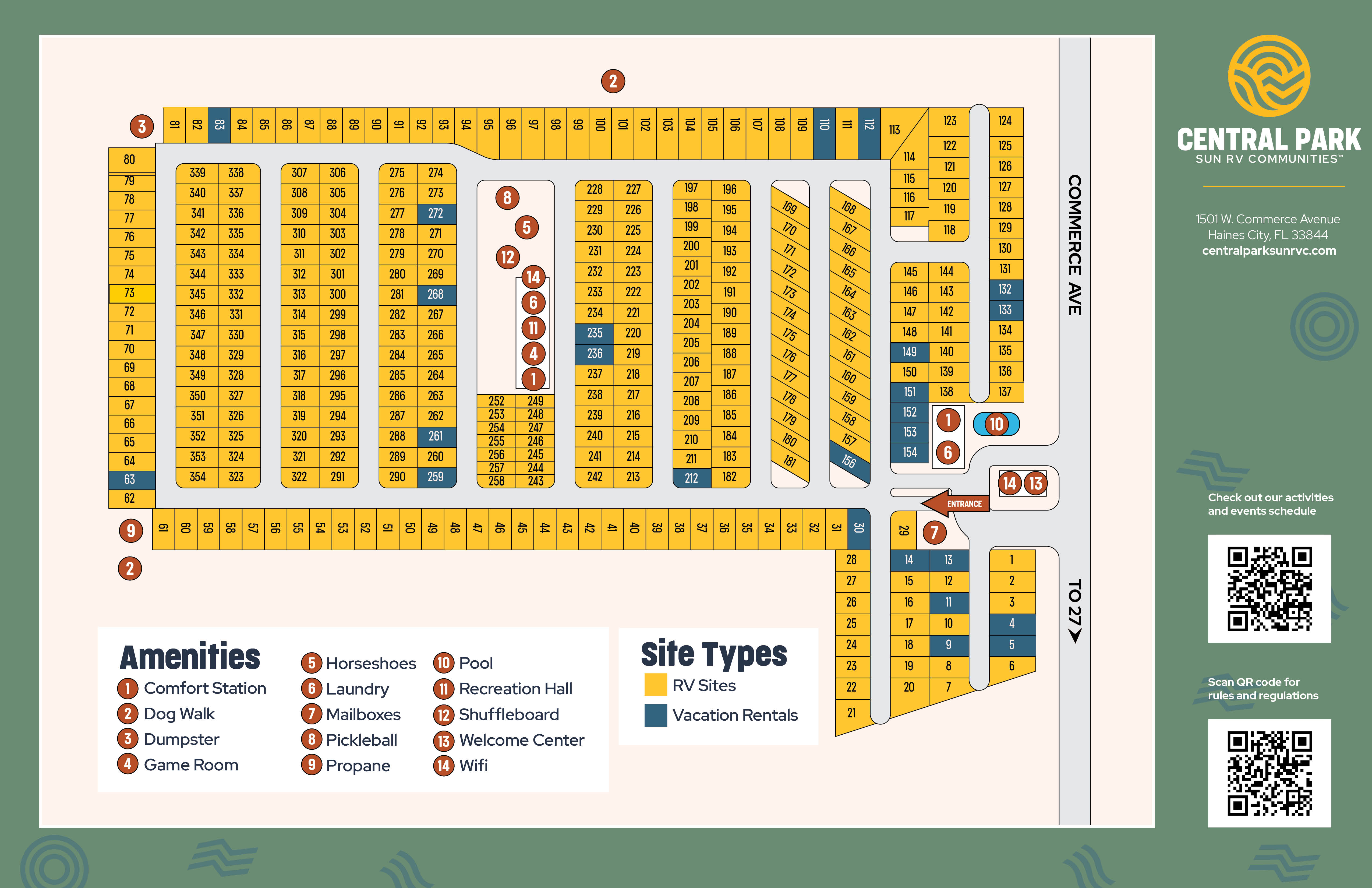 Come visit Central Park RV Community, our amazing RV community in Haines City. With over 350 RV sites nestled among wide, paved streets, we offer the best RV living experience in Central Florida. You'll also find a great selection of gorgeous and modern homes that provide plenty of space with all the conveniences you could want or need.