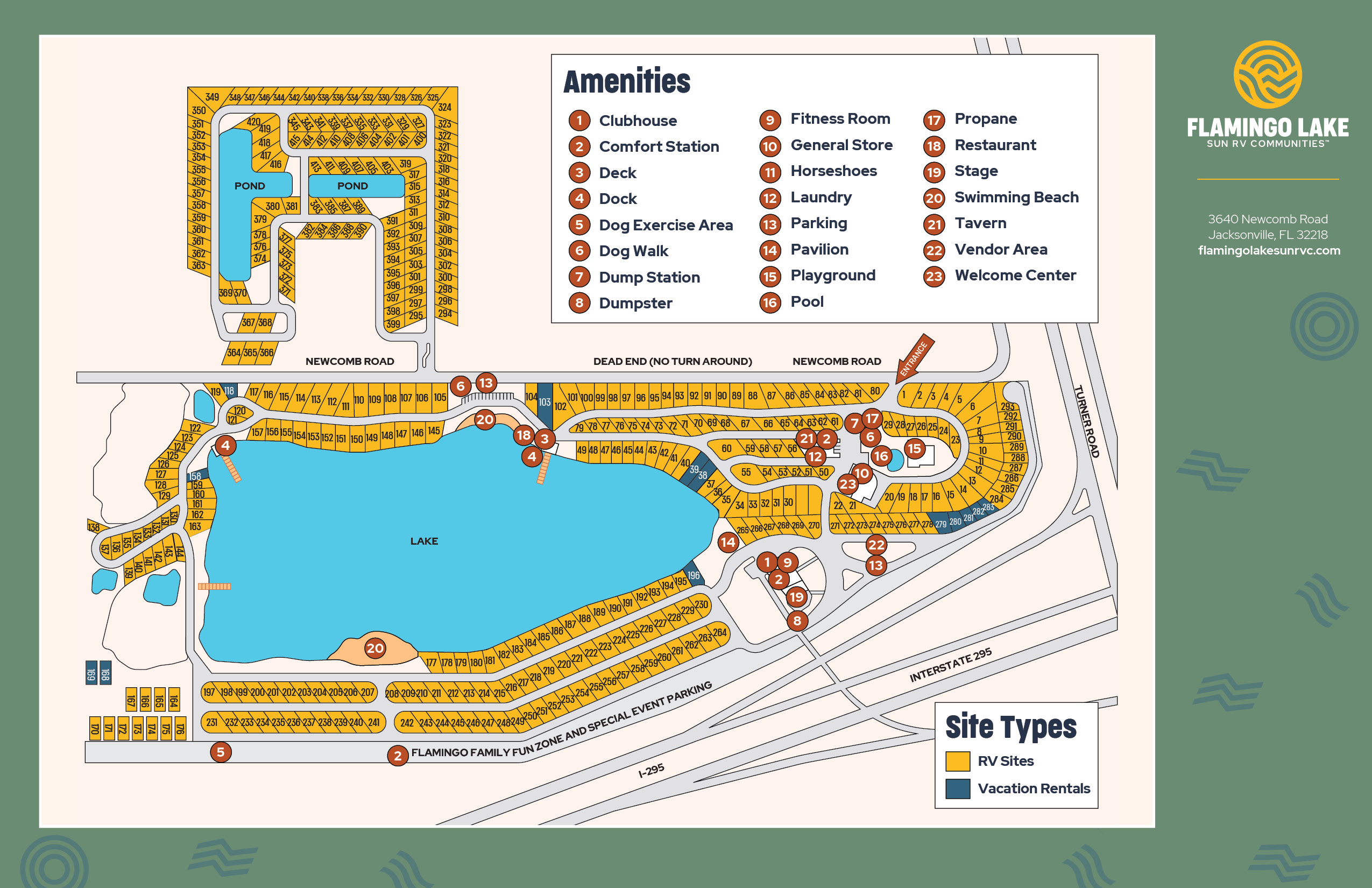 Treat the family to some fun in the sun at Flamingo Lake RV Community, one of the best RV communities near the Florida-Georgia border. Our fantastic location in Jacksonville keeps you close to a perfect mix of natural beauty and modern sophistication.