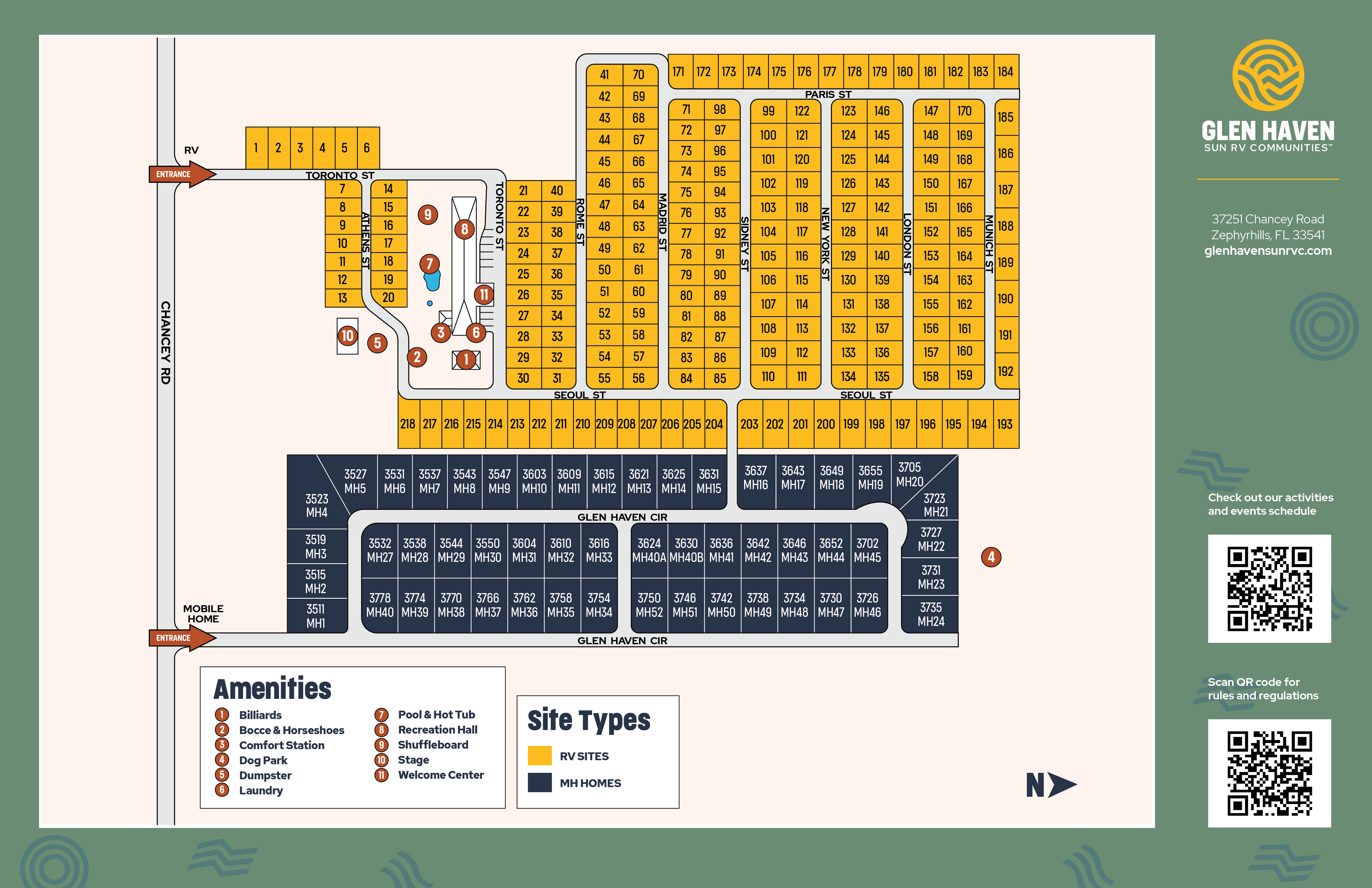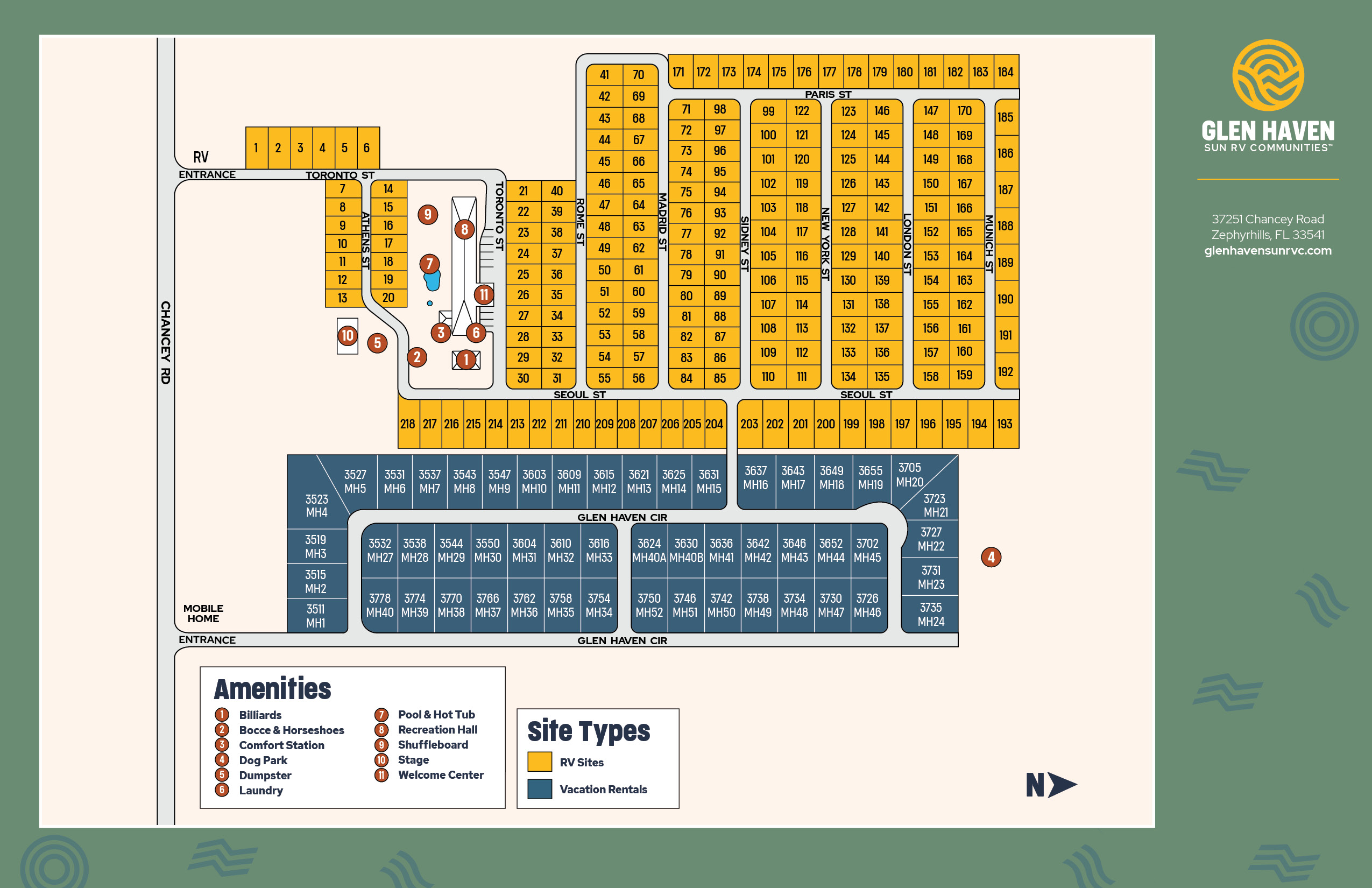 Contact our team for more information on upcoming availability. Contact usGet in touch with learn more about Glen Haven RV Community in Zephyrhills. Our friendly and knowledgeable team members will be happy to answer any questions you may have about our RV community and the local area of Central Florida.