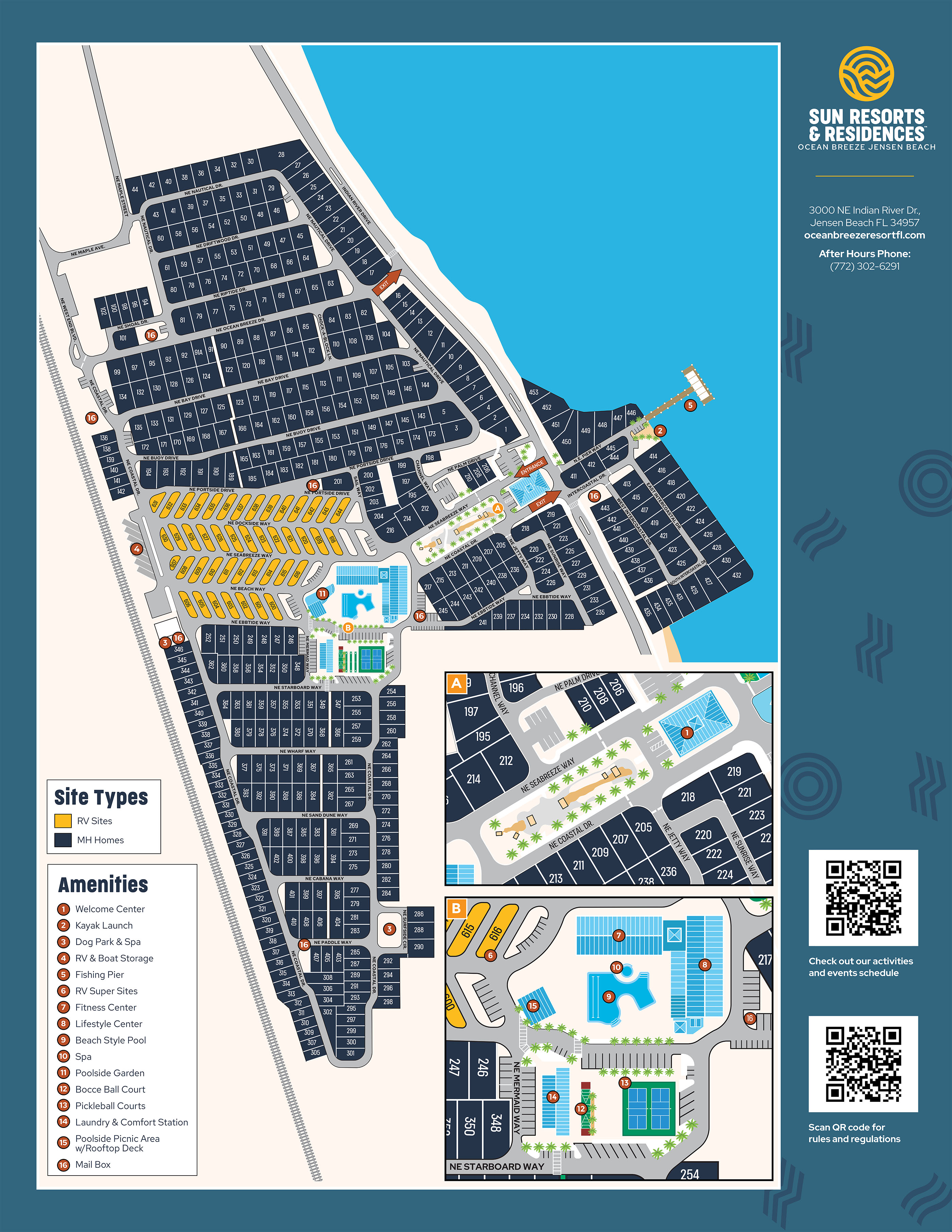 Enjoy a camping vacation at Ocean Breeze Resort. Located in Jensen Beach, FL, near Port St. Lucie, our RV resort offers the perfect mix of scenic beauty and home-like conveniences on Florida's central east coast.