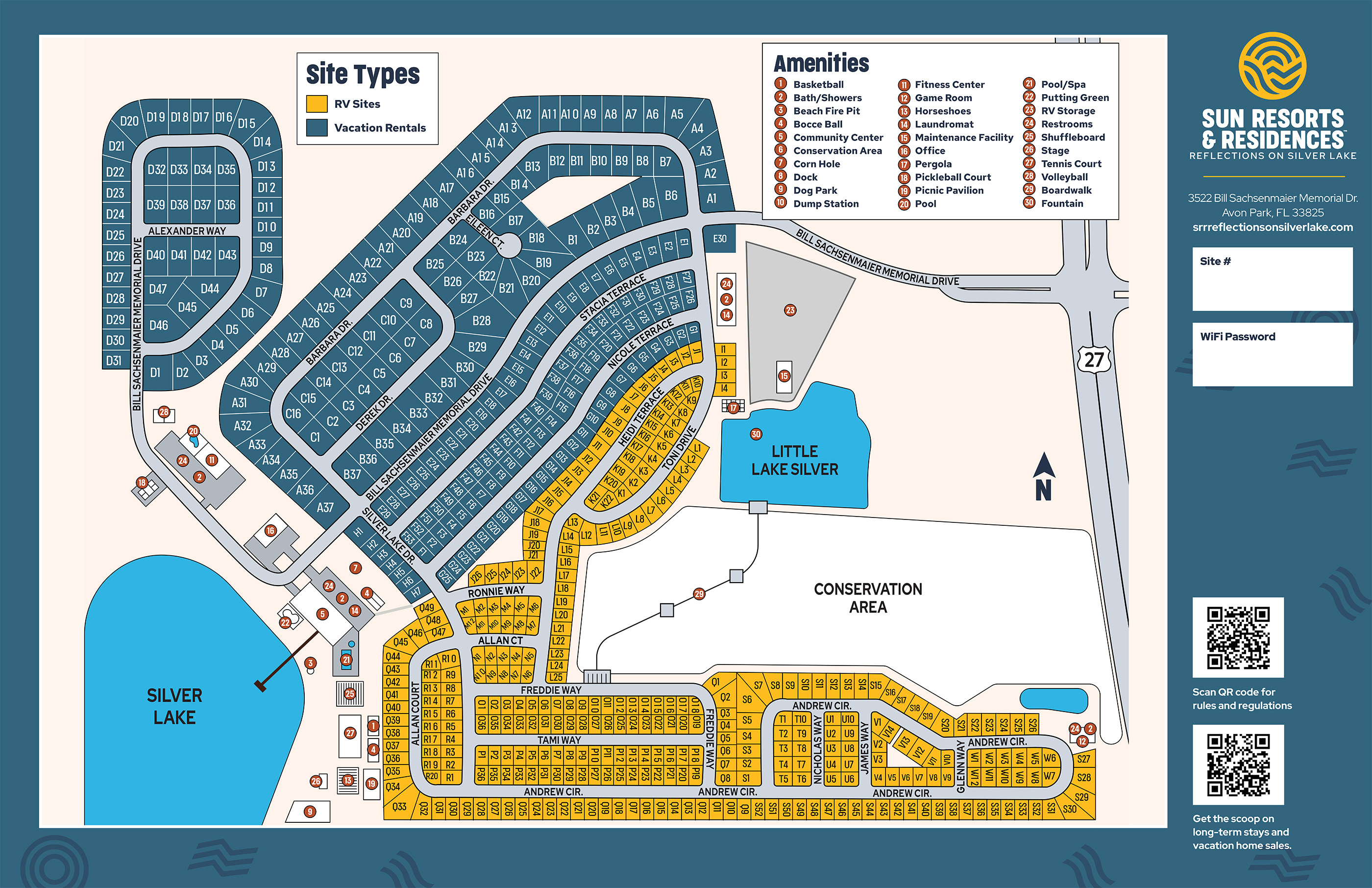 Reflections on Silver Lake, a popular 55+ Manufactured Housing and RV Community in Highlands County, Florida offers supreme residential living to meet your preferred lifestyle. Stay in one of three neighborhoods: Manufactured Homes (137 lots), Park Models (115 homes) or RVs (338 spaces). If you're seeking tranquility and privacy combined with a friendly and active community, we're confident you'll find your special place here at Reflections on Silver Lake.