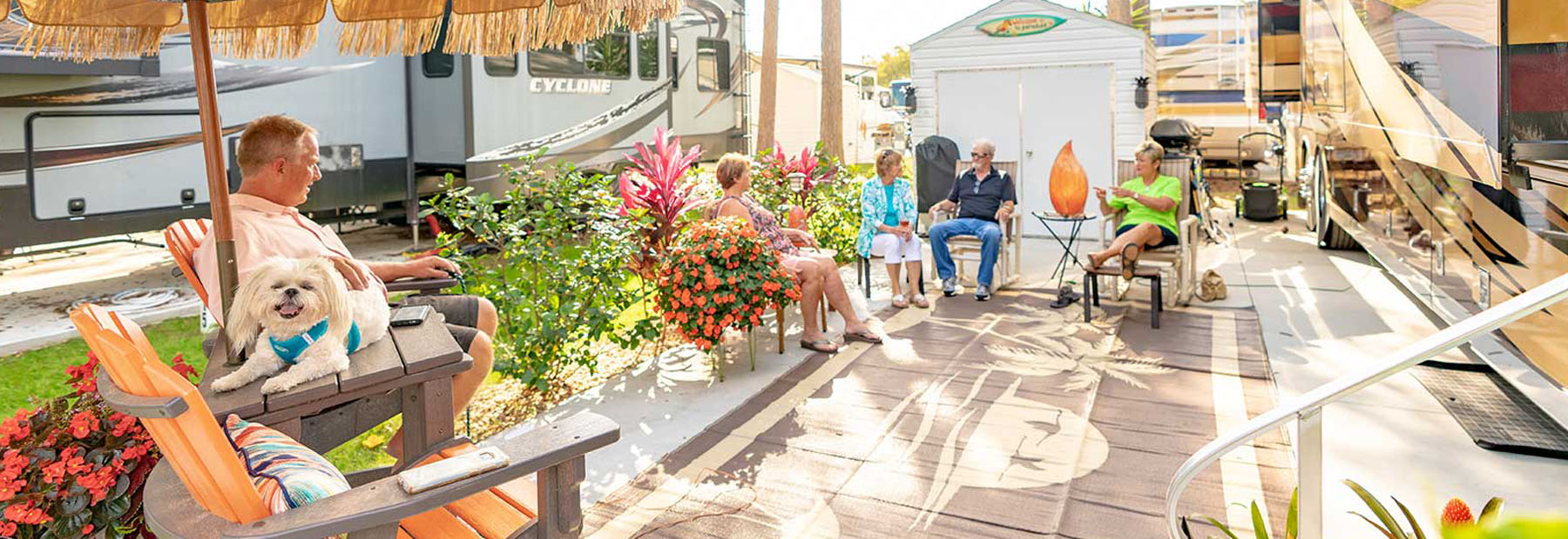 Our spacious deluxe RV sites offer full hookups with 30- or 50-amp electric service for your convenience. These pull-through RV sites feature a framed pad with crushed shells that can accommodate up to 45 feet with room for slide-outs, a concrete patio area with a picnic table, plus cable and WiFi services to keep you connected during your time at Sun Outdoors Sarasota. *Any reservations 30 days or longer are subject to metered electric charges. No tents allowed from October 31 – Memorial Day.