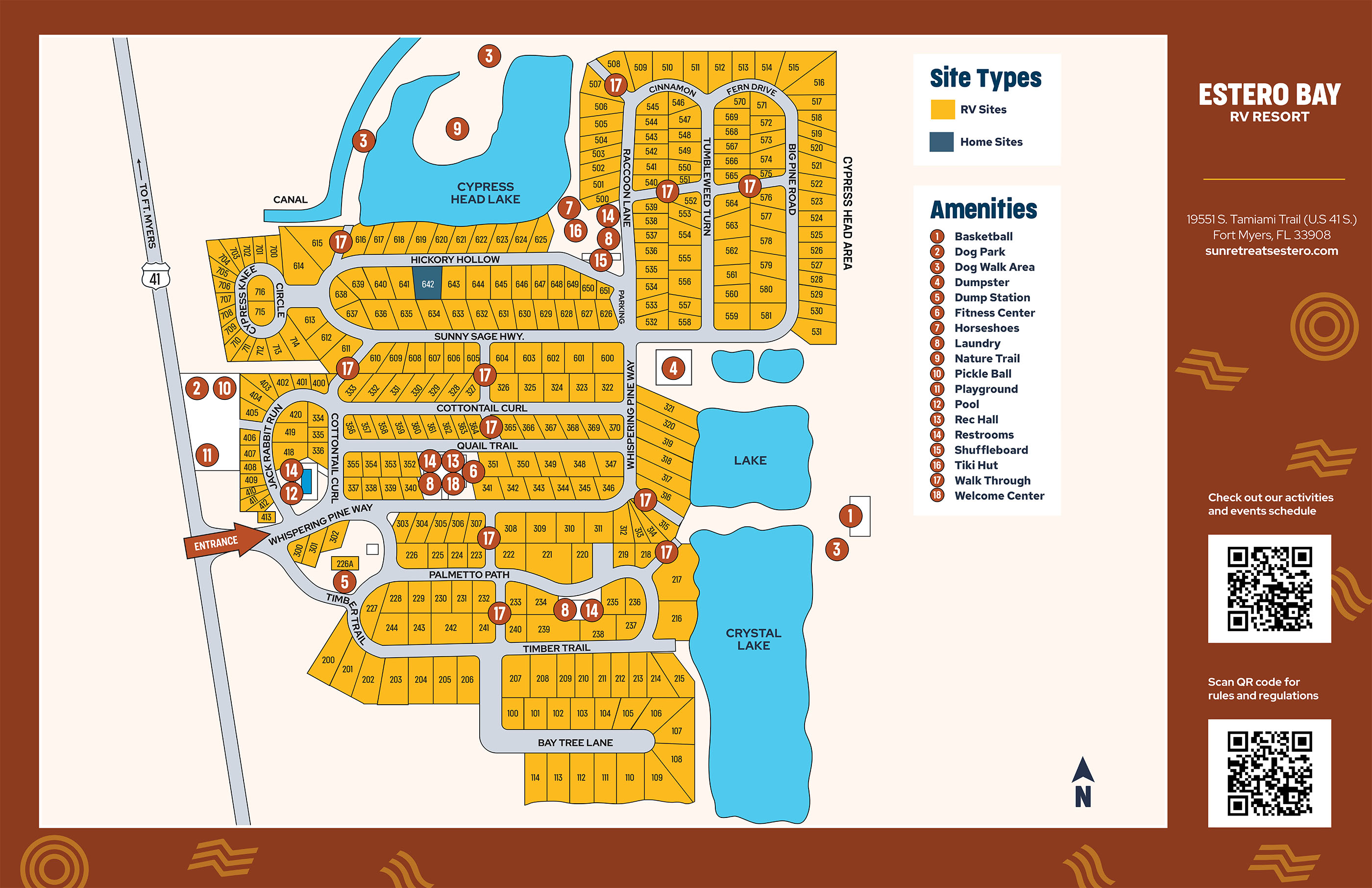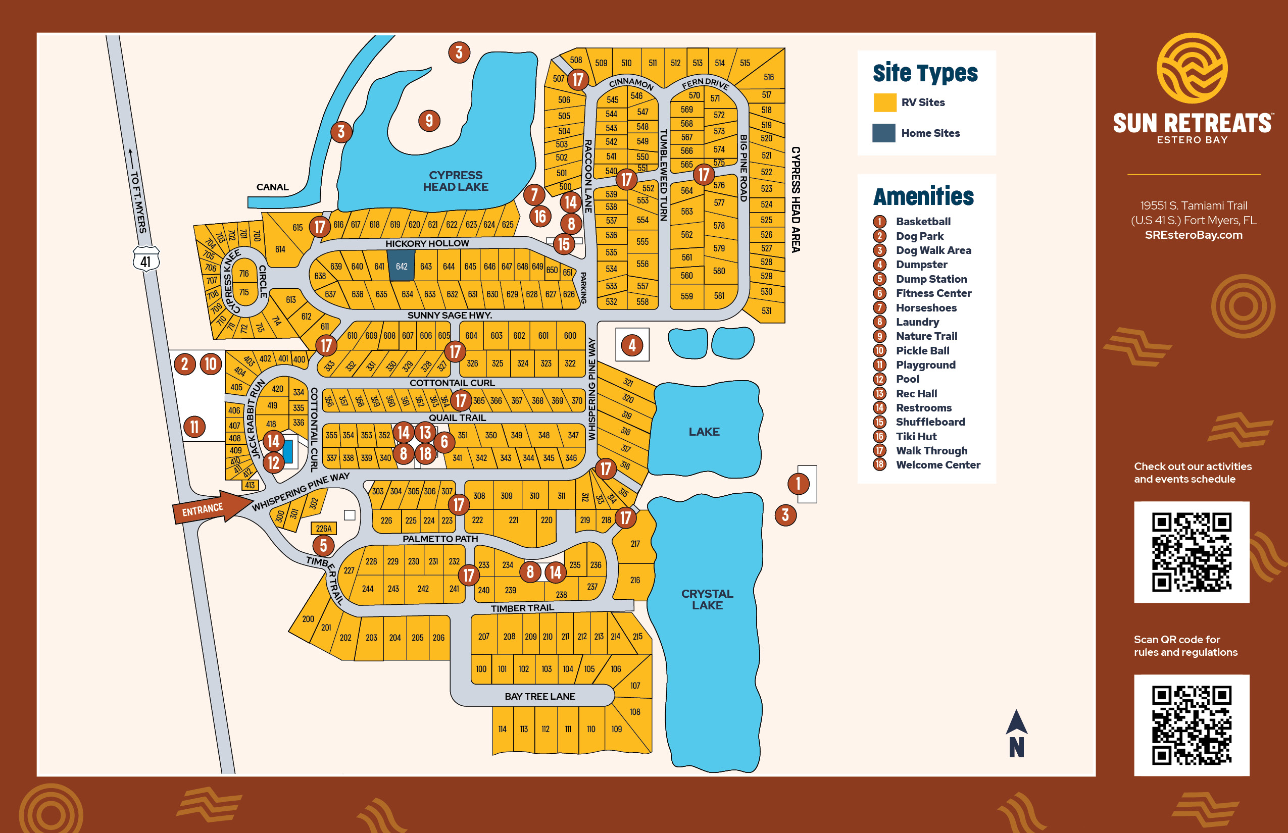 Experience Sun Retreats Estero Bay, Southwest Florida's friendliest and most beautiful RV resort. Located in fabulous Fort Myers, our gorgeous all-age resort sits on 30 acres with 300 RV sites with full hook-ups and concrete pads.
