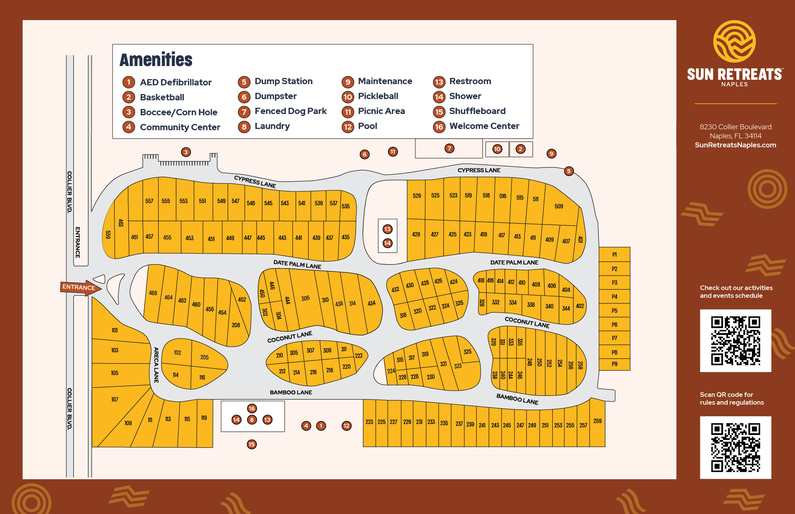 Located in Naples, Florida, our wonderful resort is close to everything yet feels like a secluded oasis. Sites are nestled among hundreds of palms, pines, oaks, cypress, and flowering shrubs.