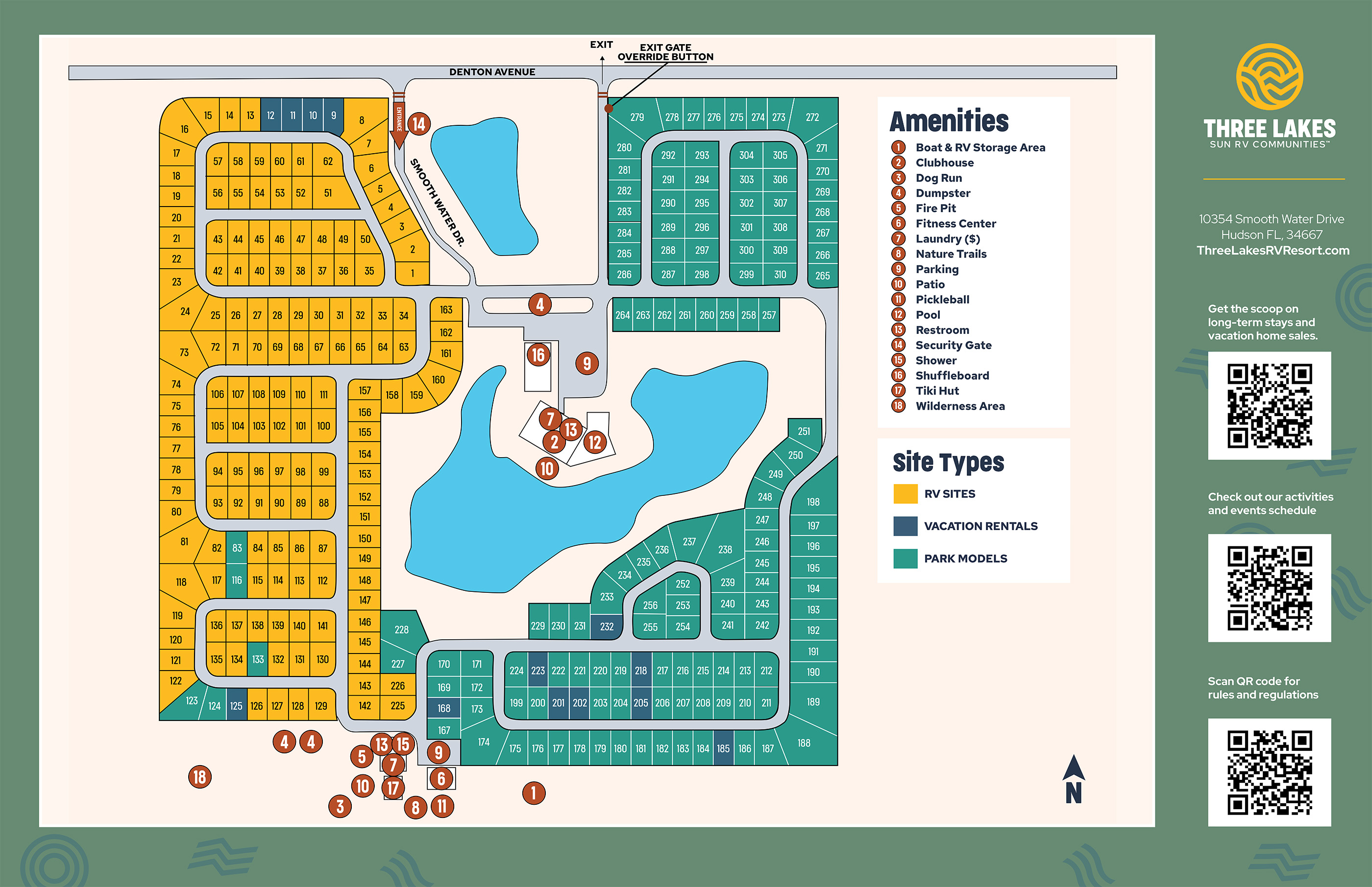 Experience life in Florida at a different pace at Three Lakes RV Community. Located near beautiful Gulf Coast beaches, our RV community provides full hookup RV sites and furnished cottages, as well as wonderful activities designed to enhance every moment.