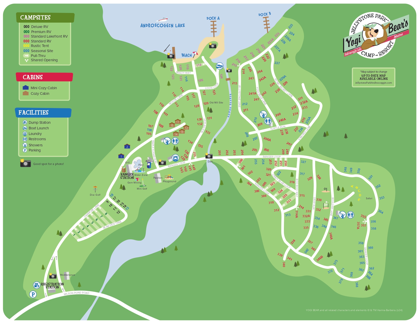 Located on our beautiful, wooded Camp-Resort and only a short distance away from Androscoggin Lake, this expansive house is the ideal family vacation spot! Three Bear’s Den sleeps up to 16 and features 4 bedrooms (master bedroom features a king bed and 2 pull-out beds, 1st floor bedroom includes one full bed, another 1st floor bedroom includes 2 twin bunk beds, and the basement room has 2 full/twin bunk beds.) Amenities include a spacious entertainment room with a fireplace, a living room, bar, basement, AC/heating, and a kitchen with high-top seating, refrigerator, sink, 6-burner stovetop & oven, microwave, coffee maker, toaster, and dishwasher. Enjoy an outdoor area with comfortable patio furniture, gas grill and a fire ring. Your house is fully stocked with plateware, pots & pans, silverware, dish & hand soap, a kitchen towel, toilet paper, linens, and towels.