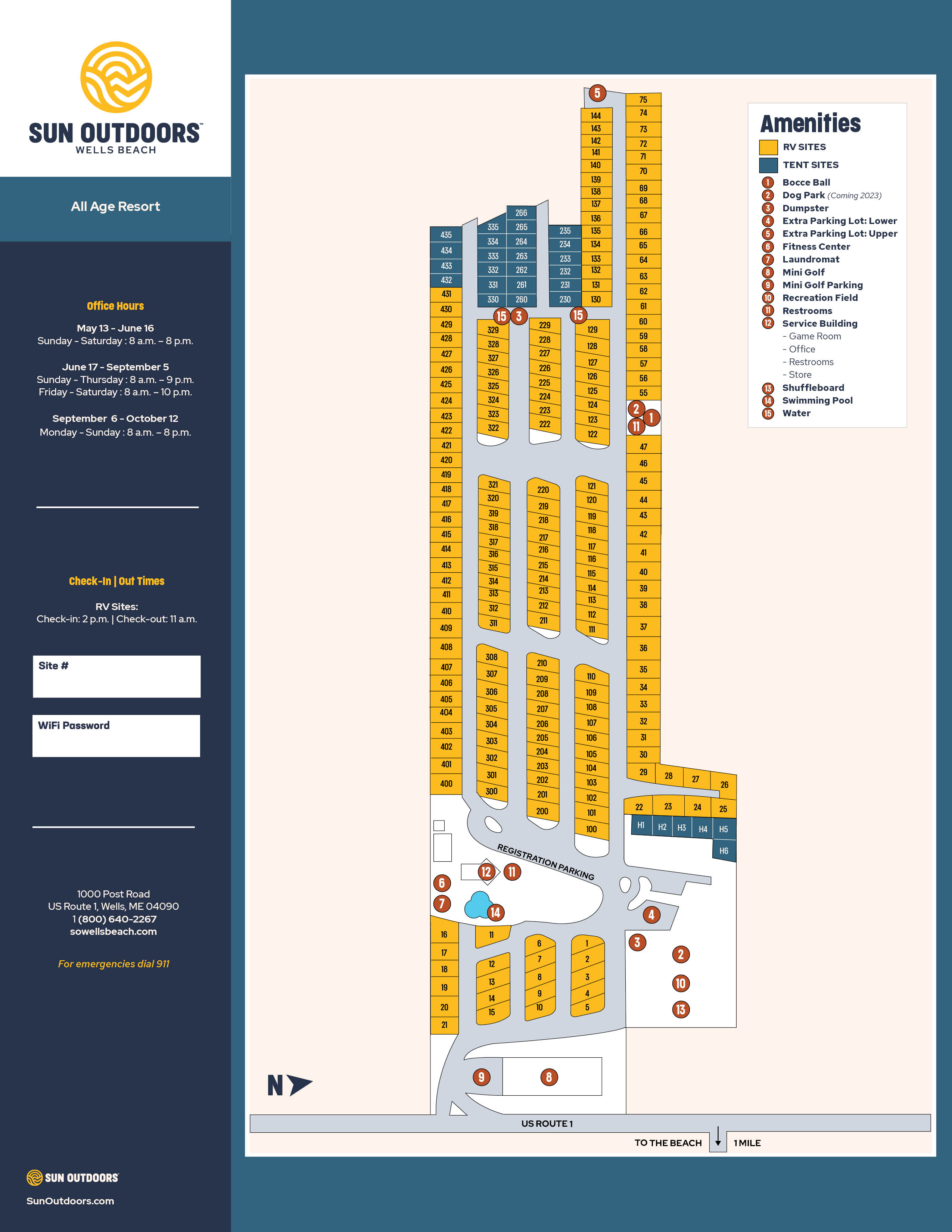 There is something for everyone at Sun Outdoors Wells Beach, formerly known as Wells Beach Resort. Located just one mile from the scenic Maine beach makes it a quick ride for the family to have fun in the sun. Our pool and 18 hole mini-golf on-site provide entertainment for all.