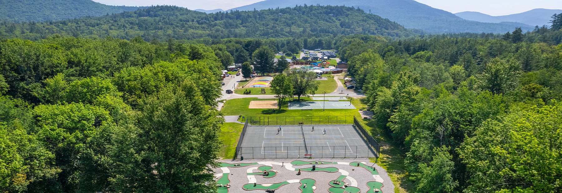 Looking for the best campground in New Hampshire with a water park? We've got you covered. Enjoy access to our huge water zone, swimming pools, mini golf course, jumping pillows, playground, sports courts, and more. Non-peak season attractions have reduced availability. Please see Hours of Operations for full availability.