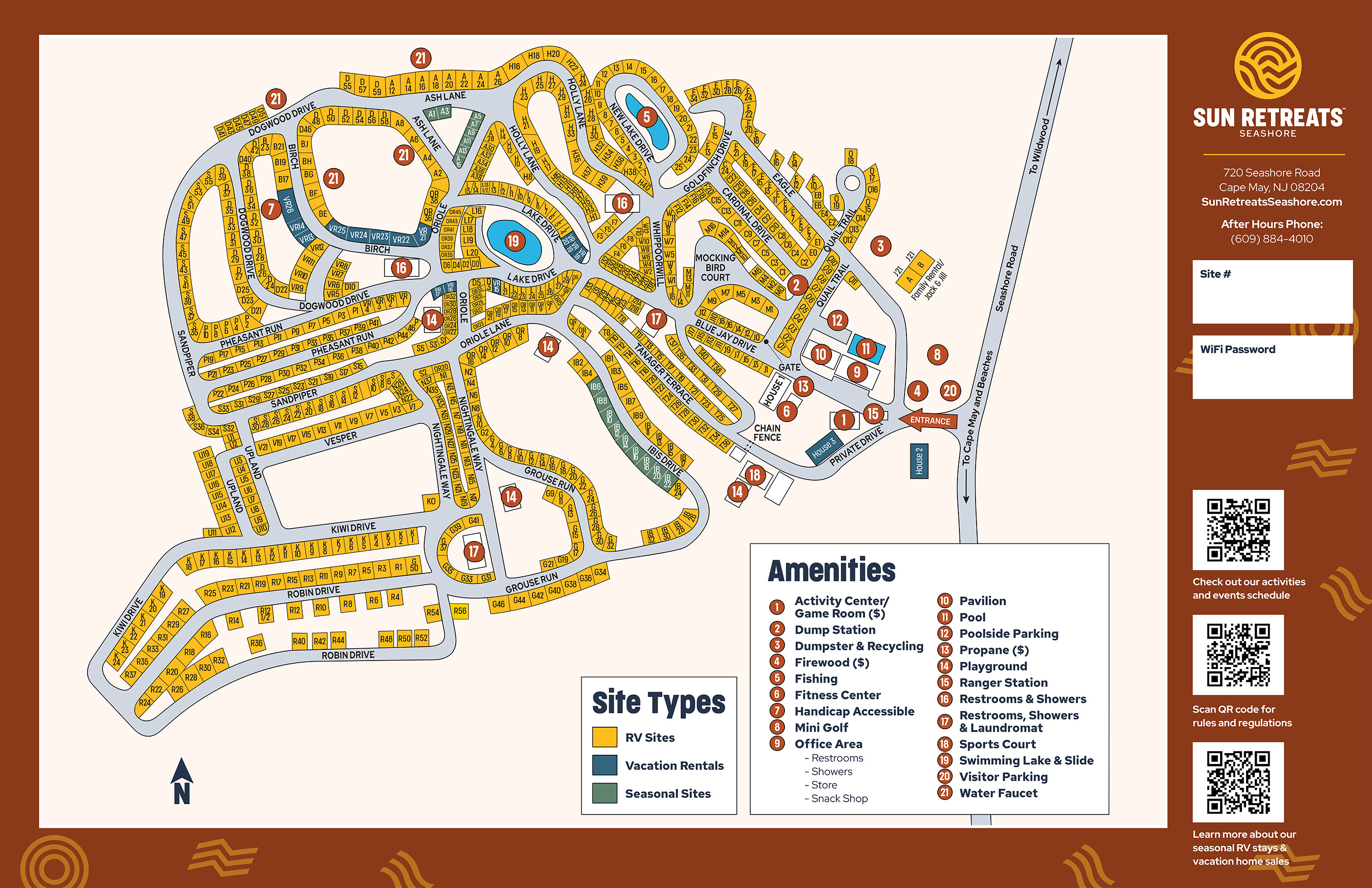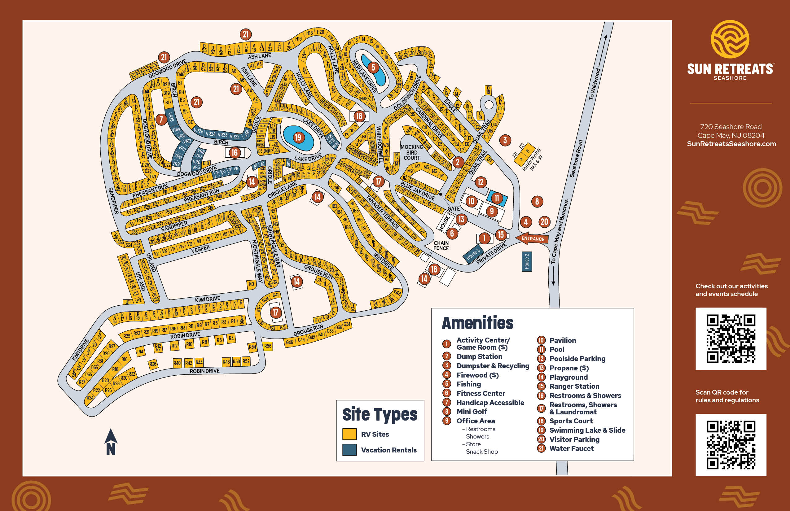 Discover your home away from home on the beautiful Jersey Shore at Sun Retreats Seashore, formerly Seashore Campsites & RV Resort. Our resort features 90 acres of scenic open space with RV sites, tent camping sites, and vacation rentals surrounded by lush landscaping and mature shade trees. Make family memories in Cape May, New Jersey.