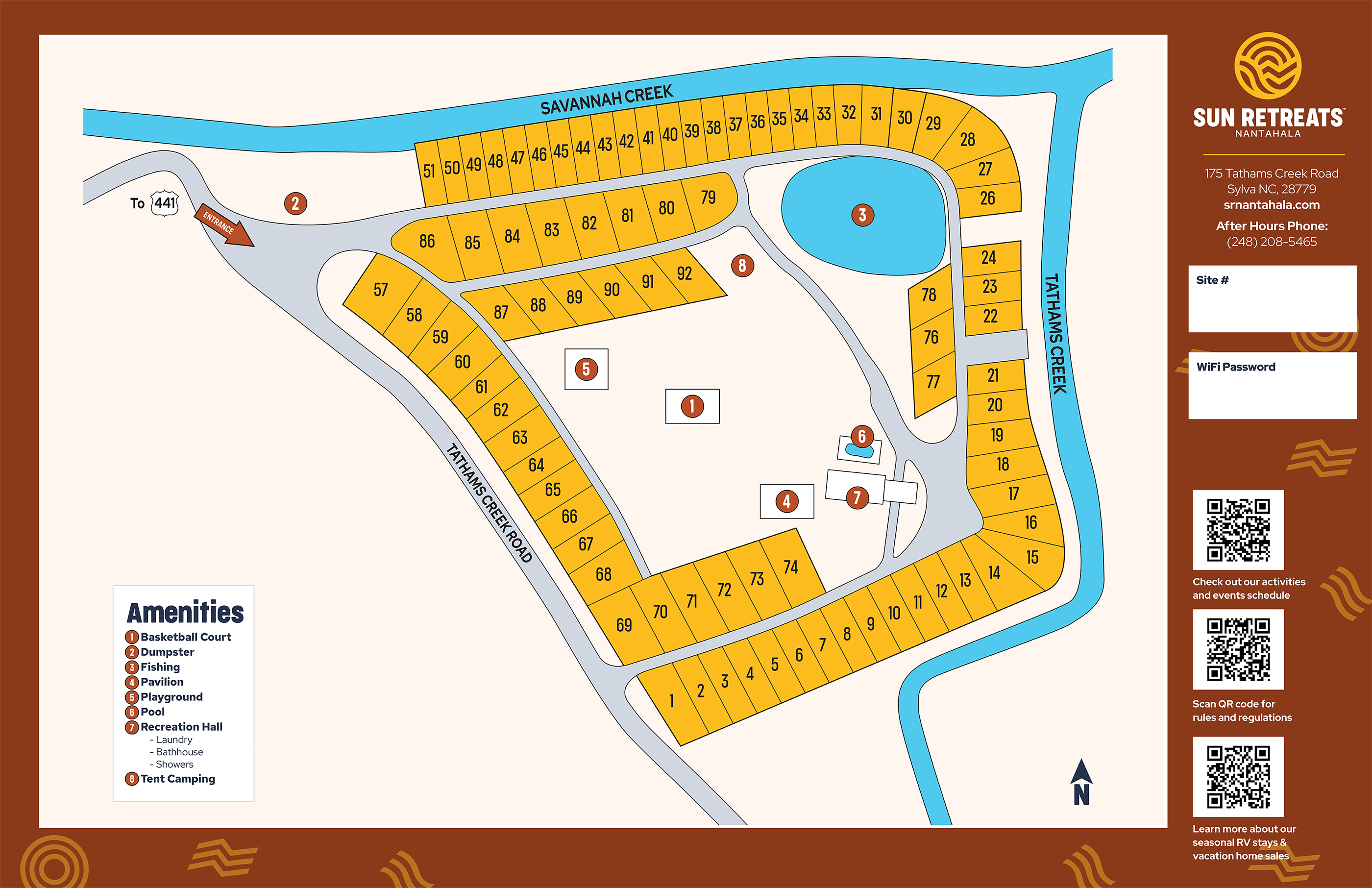 Take in the gorgeous scenery of the Great Smoky Mountains with an outdoor vacation at Sun Retreats Nantahala, formerly Fort Tatham RV Resort & Campground. We are your ideal base camp for exploring the Blue Ridge Parkway, Biltmore House, Great Smoky Mountain Train Adventures, Dollywood, trout fishing, gorgeous waterfalls, and many attractions and festivals.