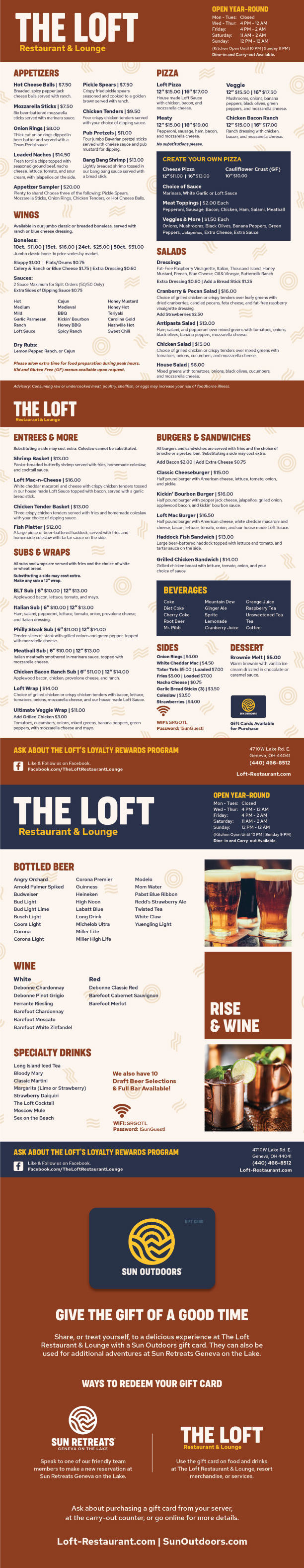 Escape to a Lake Erie getaway where families make memories in Ohio's original resort town. Sun Retreats Geneva on the Lake offers incredible amenities and activities for endless fun, including a miniature golf course, two dog parks, and an outdoor pool. Enjoy fishing on the sparkling lake and get around the resort with our golf cart rentals. We also offer a gas station to fuel your boat and The Loft Restaurant & Lounge - a popular local eatery for generations.