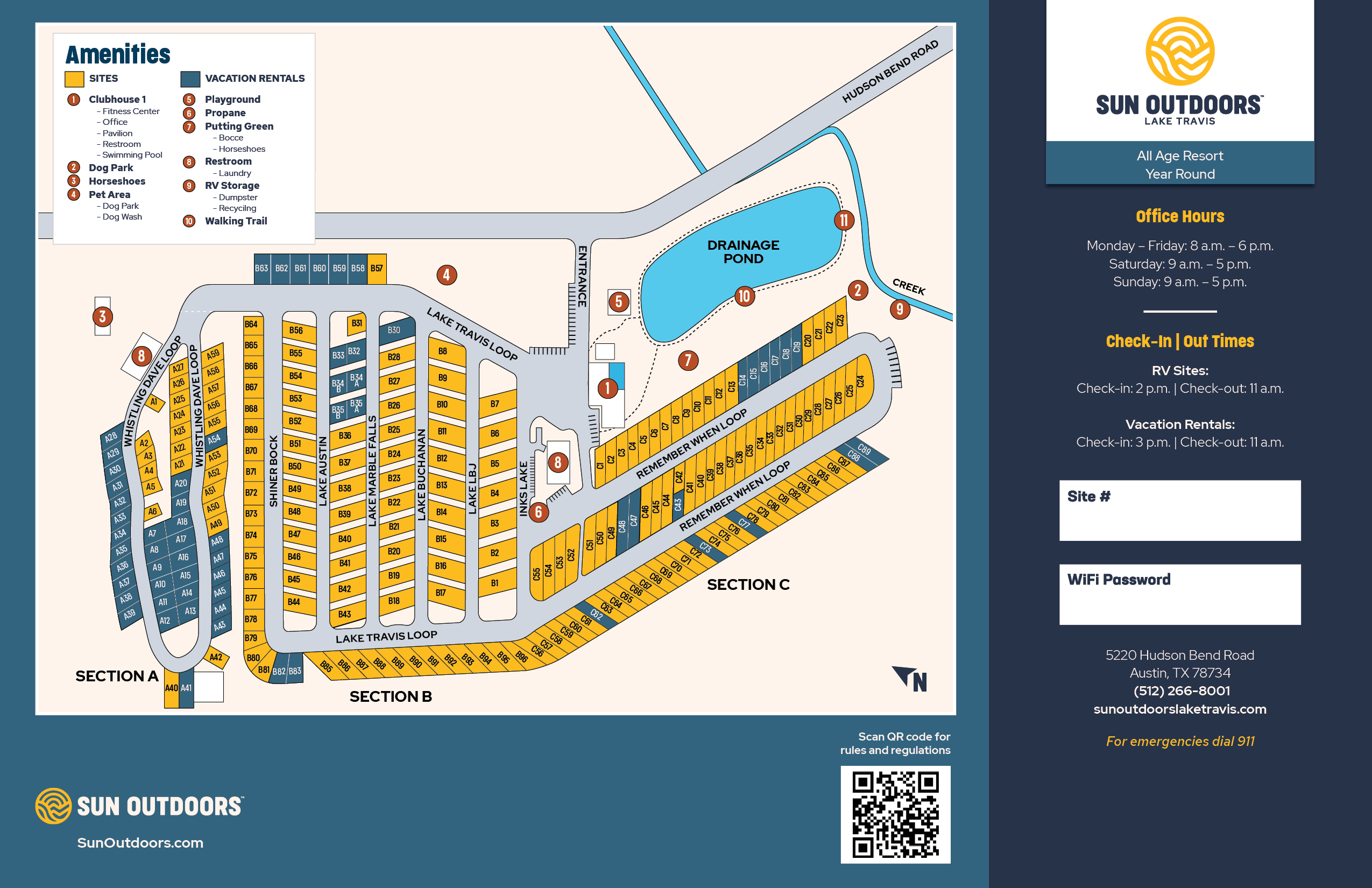 Escape to our sophisticated and vibrant resort at Sun Outdoors Lake Travis, formerly known as La Hacienda RV Resort. Enjoy an amazing location in Austin, Texas, known as the "live music capital of the world," with a wonderful selection of amenities and pet-friendly accommodations for unforgettable family vacations.