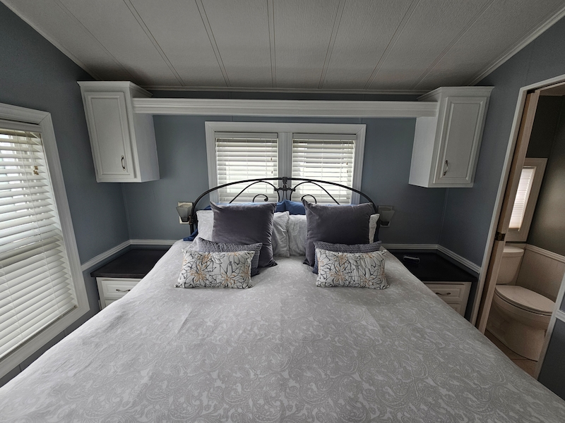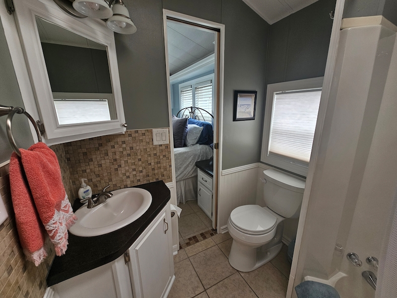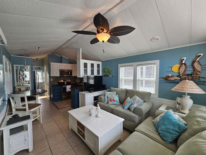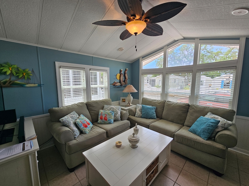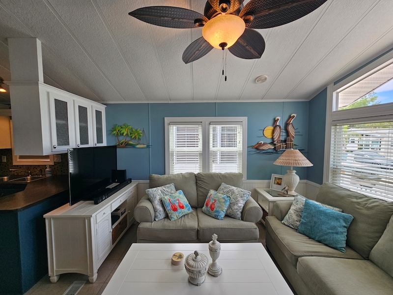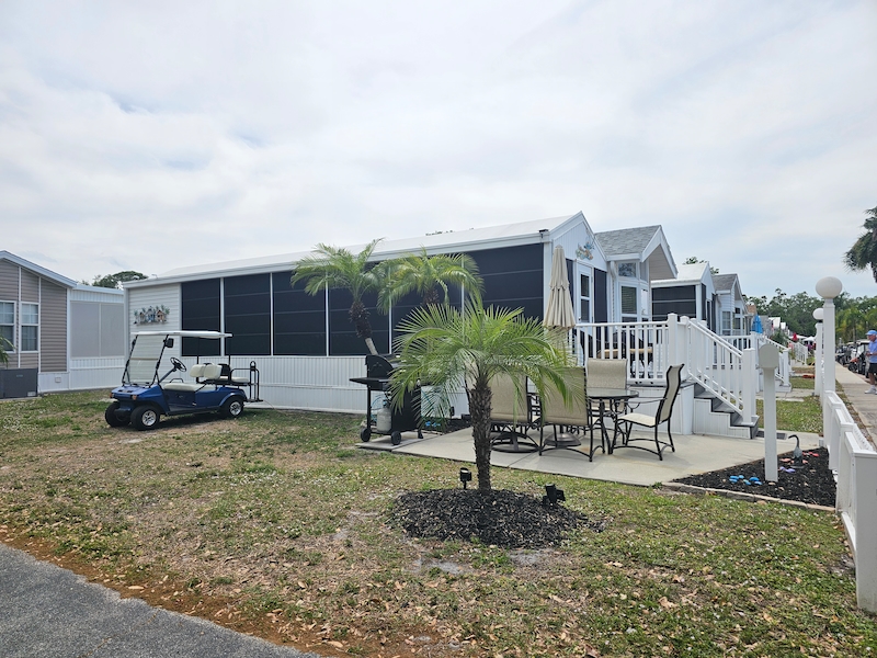 This fantastic property offers a spacious side yard, perfect for entertaining or relaxing outdoors. The home has been freshly painted and features elegant white cabinetry throughout, creating a bright and inviting atmosphere. The main house includes one comfortable bedroom and a well-appointed walk-through bathroom for added convenience. An additional bedroom with a half bath is located in the lanai, providing extra space for guests or a private retreat. The kitchen is equipped with sleek stainless steel appliances, and as an added bonus, a golf cart is included for easy neighborhood exploration. Don't miss out on this charming and well-maintained home!Features