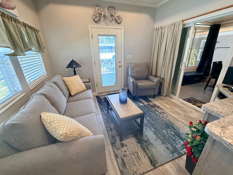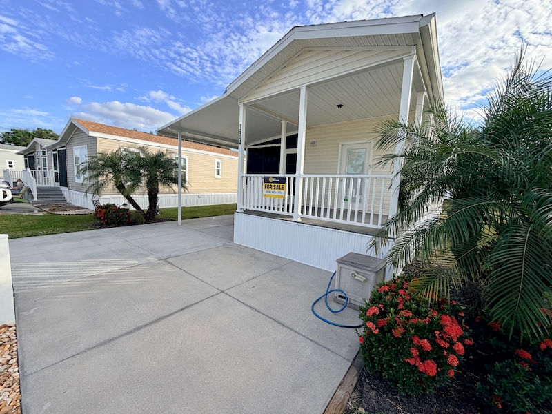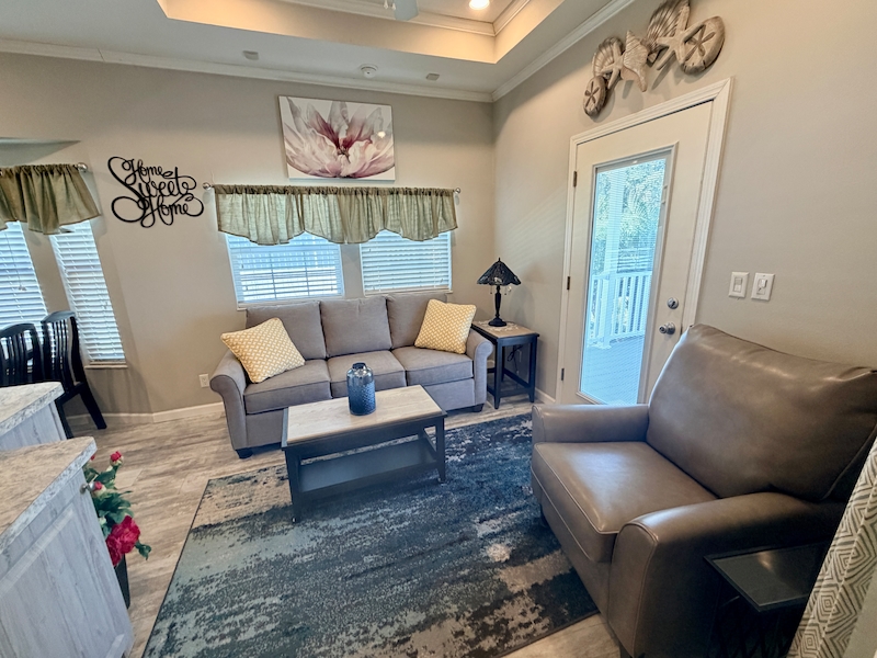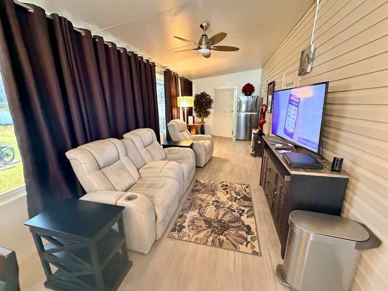 Beautiful 1 -Bedroom Home with Covered Porch & Lanai! You’ll love this charming home with a large covered porch — perfect for relaxing or entertaining! Inside, there’s a spacious bedroom with an ensuite bath and walk-in closet, plus a handy half bath for guests. The kitchen has stainless steel appliances, and high tray ceilings make the space feel bright and open. The lanai is set for extra entertaining and access to a laundry area. Exterior there is room for your car and a special spot for your future golf cart . Move-in ready and full of comfort and charm!Features