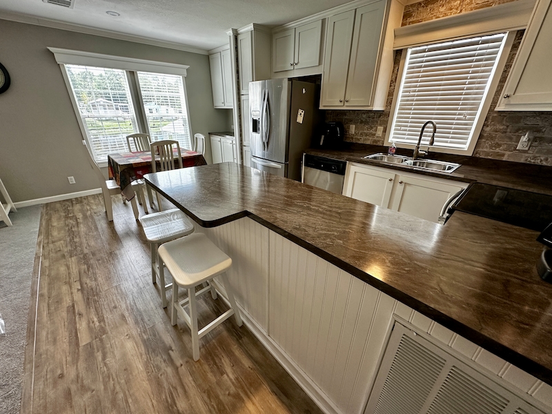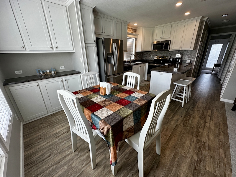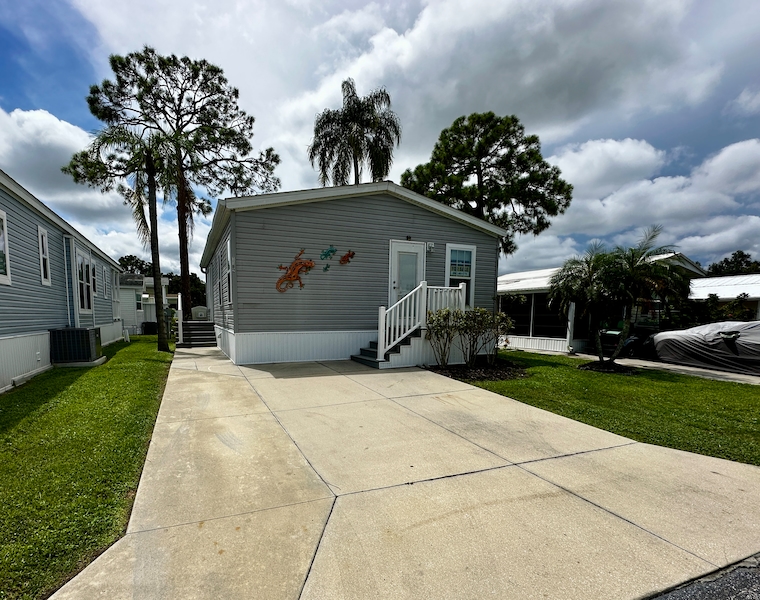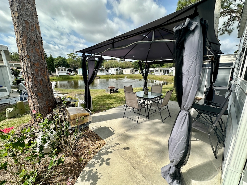 Discover this charming doublewide home nestled by the tranquil lake of the states, boasting two bedrooms and two bathrooms. With a serene patio offering picturesque views of the pond, this 2018 residence exudes modern elegance. Immaculate white shaker cabinets complement the stainless steel appliances in the kitchen. Retreat to the primary ensuite, complete with a luxurious walk-in shower, while the second bathroom is complemented with a bathtub. Experience the epitome of comfort and style in this pristine lakeside retreat to sit back and enjoy the beautiful Florida weather.Features