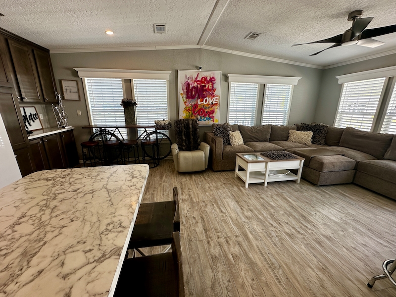 Over $30k in upgrades! This charming doublewide home in the desirable West End boasts 2 spacious bedrooms, 2 full bathrooms, and an open-concept layout featuring a chef's kitchen with an island. Enjoy beautiful sunset views from wrap around oversized trex deck with a cozy gas firepit, and benefit from ample storage in the large exterior shed.Features