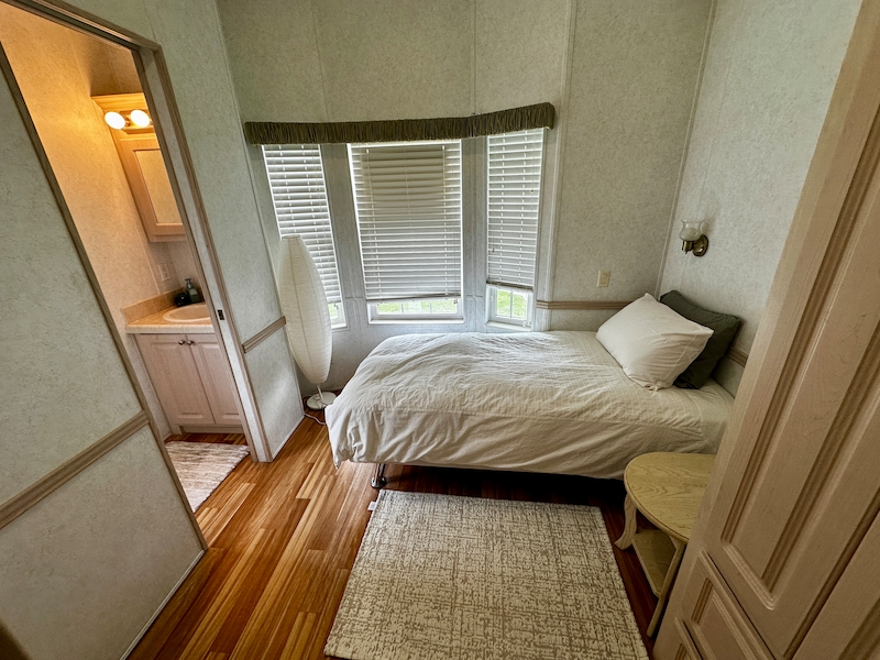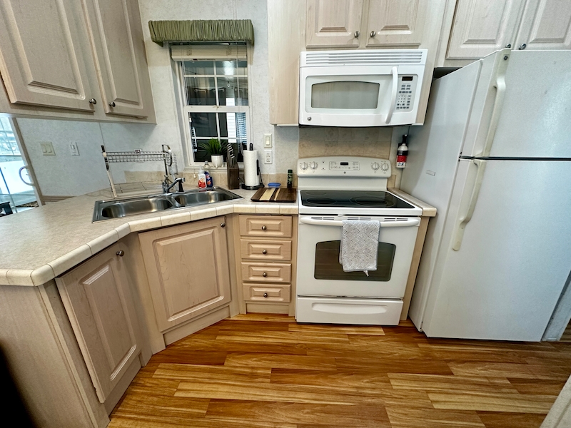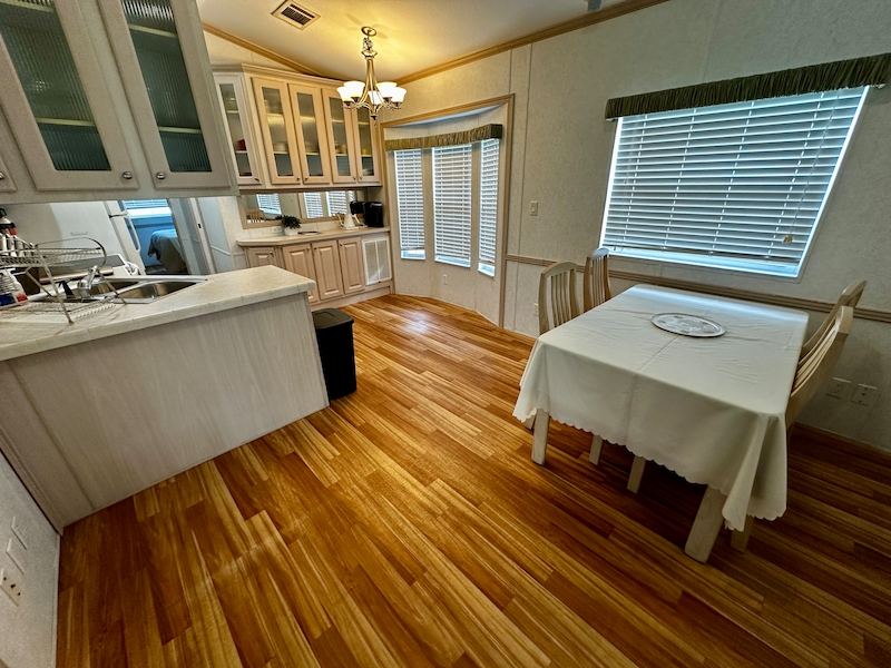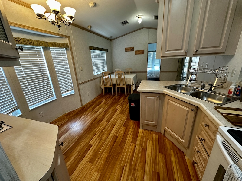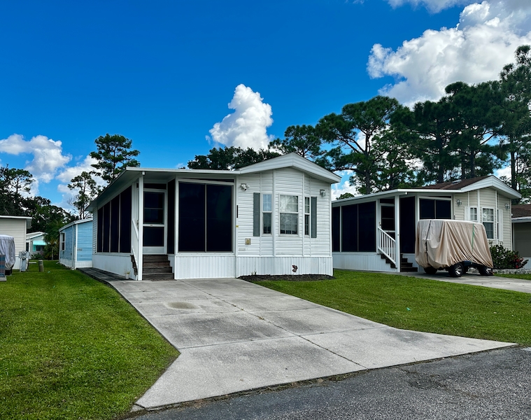 Beautiful 2 Bedroom, 1.5 Bath Mobile Home in East End of Resort Located in the east end of the resort, this well-maintained home features a spacious raised lanai with air conditioning—perfect for relaxing or entertaining. Inside, you’ll find a walk-in shower in the full bathroom, and a convenient half bath connected to one of the bedrooms, which also includes built-in cabinets for extra storage. Come view this 2 bedroom home today!Features