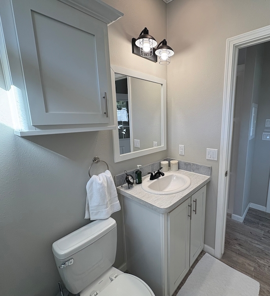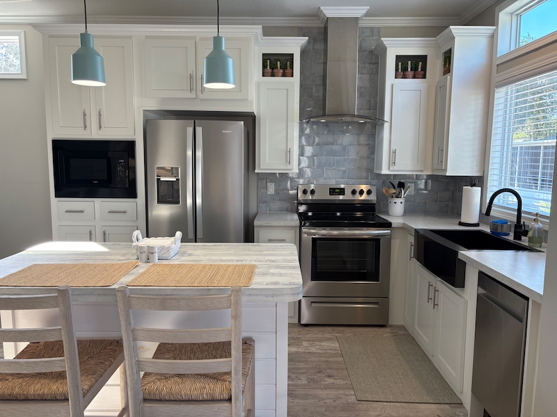 This nearly-new home offers 1 bedroom and 1 bathroom in a prime central location. Built just two years ago, the home feels like new with its modern features. Highlights include a charming farm sink, a dishwasher, walk in shower, and stylish white shaker cabinets with a pantry. Metal roof and numerous upgrades throughout. The kitchen boasts an island perfect for entertaining. The lanai features a tiled floor and an AC mini-split for comfort, while the attached shed provides ample storage and a convenient washer and dryer setup. This home is a perfect blend of functionality and style!Features