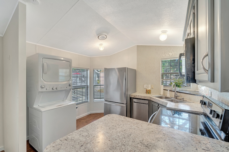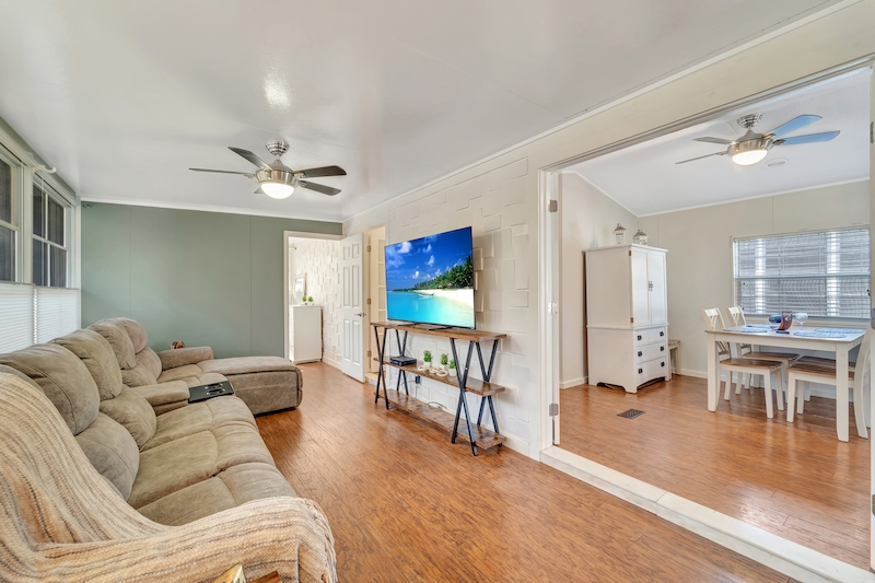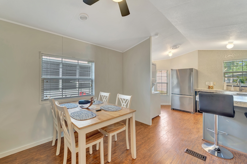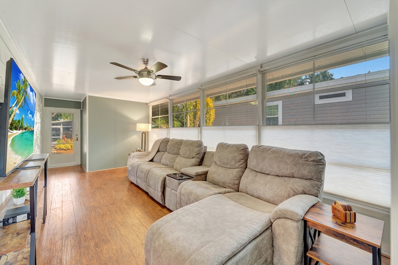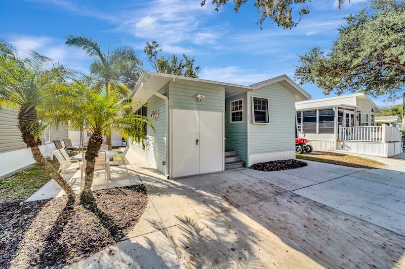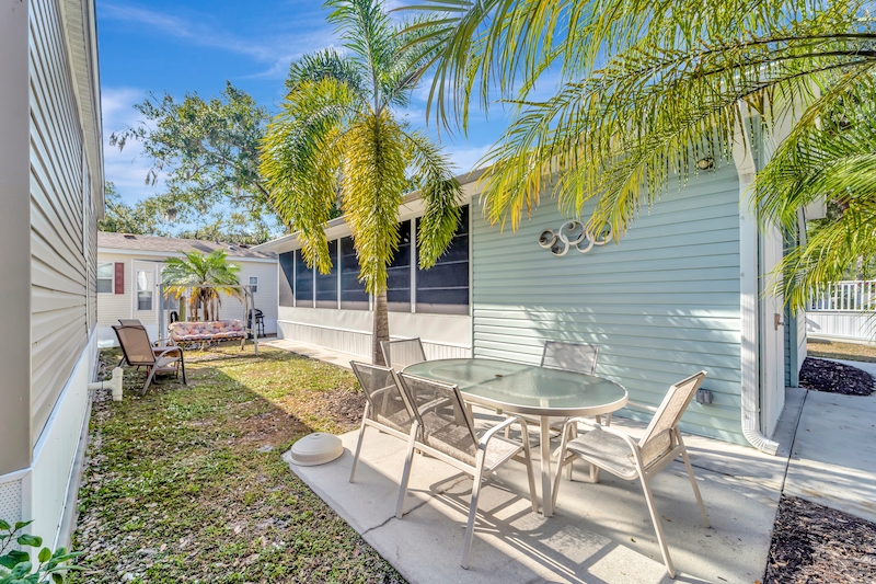 Welcome to this beautifully upgraded Cutlass park model on Lot 731, located in the heart of the highly sought-after Sun Outdoors Sarasota community. This move-in-ready home is designed to offer comfort, style, and ease—perfect for snowbirds, seasonal residents, or anyone dreaming of the Florida lifestyle. Inside, you’ll find two cozy bedrooms with queen beds, including a primary suite featuring a premium Sleep Number bed with motorized head and foot lift. The home’s inviting interior feels open and airy thanks to warm paneling, elegant glass-paneled saloon doors, and ceiling fans in every room. A heated and cooled raised lanai, newly constructed in 2017 and equipped with beautiful top-down/bottom-up shades, provides an additional living area that’s ideal for relaxing, dining, or entertaining. Modern conveniences such as a new dishwasher, new washer and dryer, a La-Z-Boy electric reclining sofa, smart locks, and an exterior Ring camera make daily living simple and enjoyable. A durable steel roof and a street-facing golf cart garage with ample storage further enhance the home’s appeal. Step outside to enjoy a peaceful courtyard designed for effortless outdoor living. With a six-person dining table, a charming loveseat swing, and additional seating, this space is perfect for casual get-togethers, quiet mornings, or evenings under the palms. Attractive sunshades add both comfort and curb appeal. All of this is set within Sun Outdoors Sarasota, a lively, amenity-rich community offering pools, a fitness center, pickleball and tennis courts, social events, and endless opportunities to stay active and connected.Features
