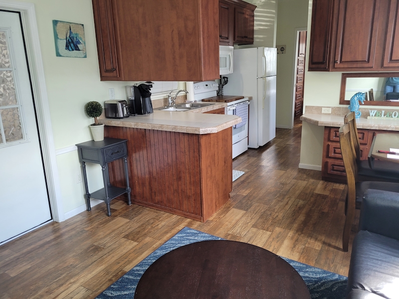 Introducing this beautifully updated 2-bedroom, 1.5-bath home, AC to the lanai and well designed with timeless charm and modern convenience in mind. Warm brown cabinetry brings an elegant, cohesive feel throughout, while a luxurious walk-in tiled shower and spacious vanity elevate the bathroom experience. Enjoy the ease of everyday living with a dishwasher and clean, modern white appliances. This exceptional home seamlessly blends style, comfort, and practicality—perfect for those seeking a move-in-ready retreat.Features