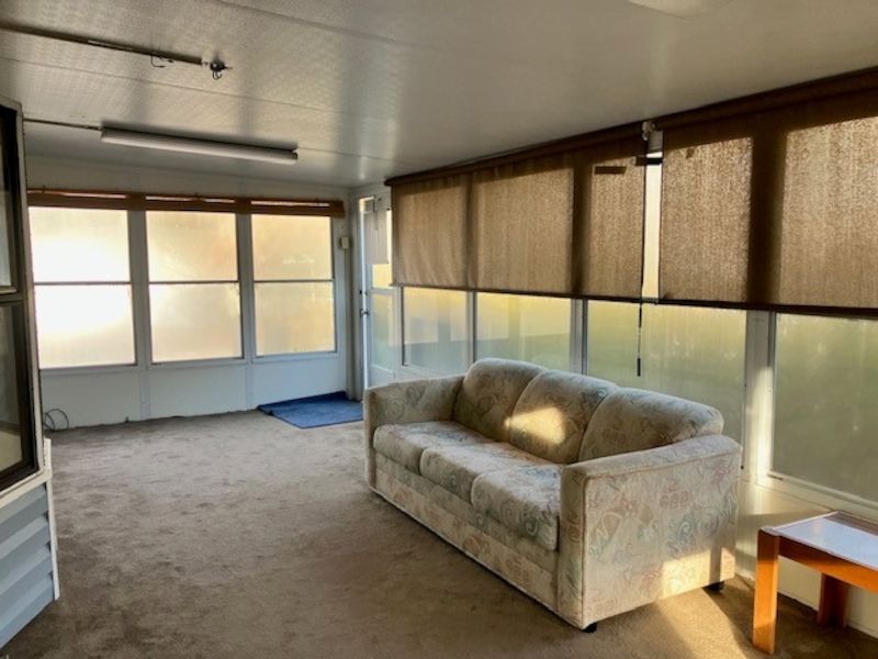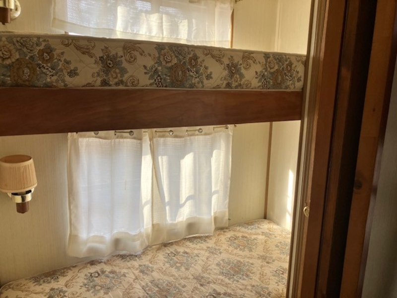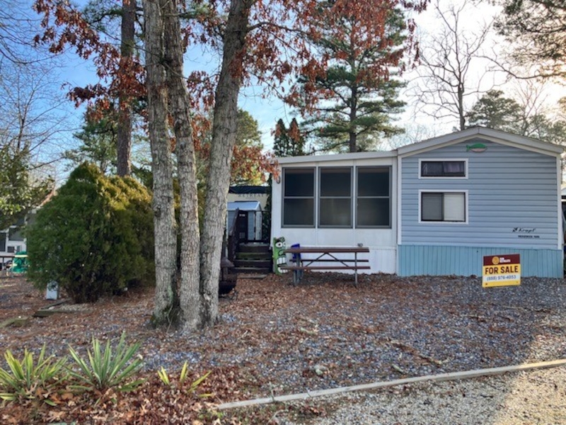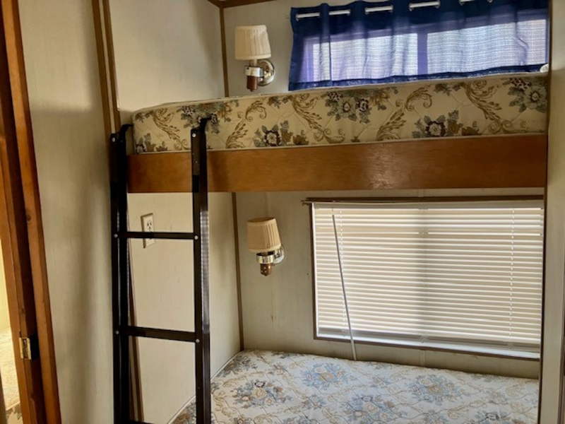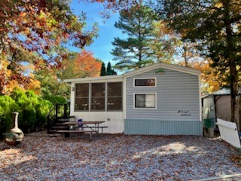 This 1989 Kropf park model with large added sunroom is the perfect affordable summer home you have been waiting for. 3 bedrooms. A primary bedroom on one end and 2 bedrooms each with a set of twin bunks on the other is perfect for the little ones. Added room double's the living space can be equipped with futons or sofa beds for added sleeping arrangements. Shed is included as well. Must see this bargain in person.Features