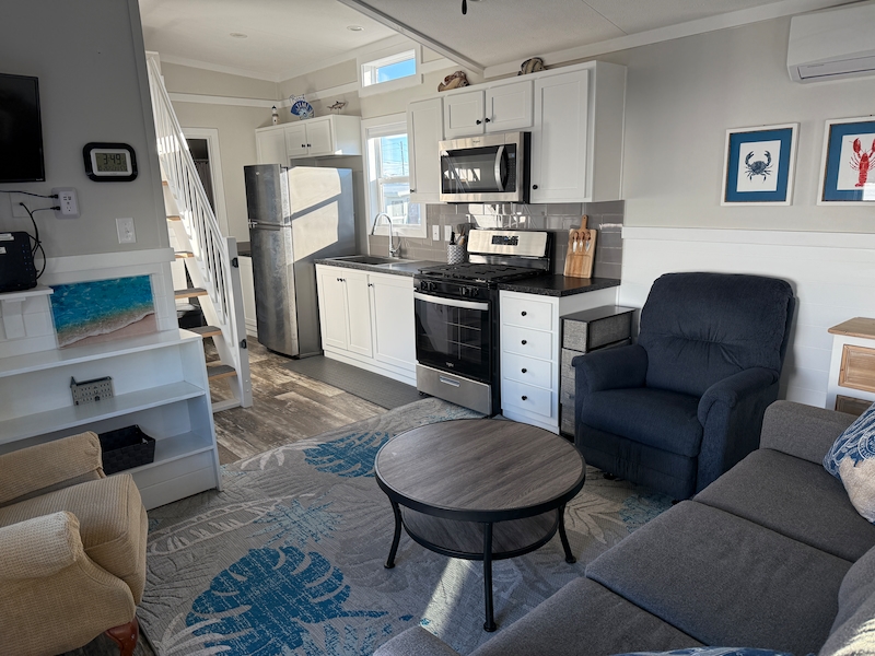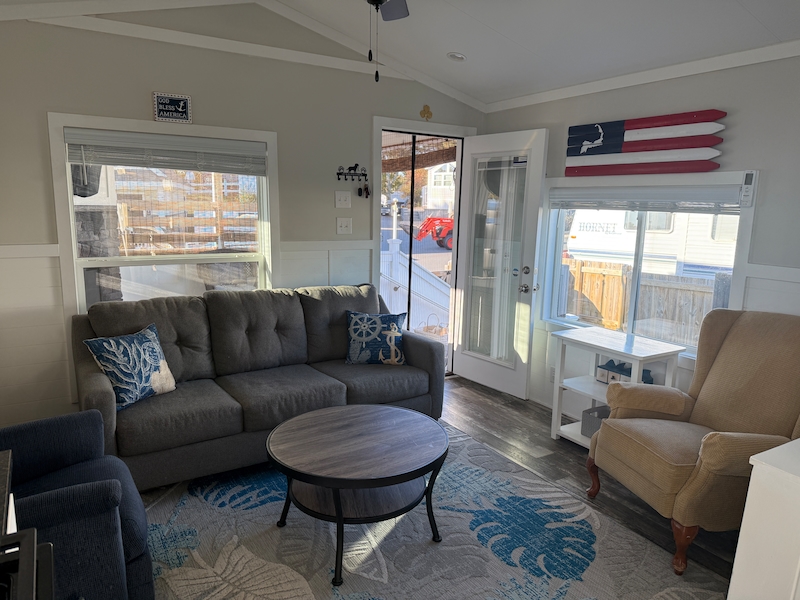 This 2-bedroom park model home is like new, and situated on a spacious corner lot a short walk from our private beach on Nantucket Sound. The summer home features a covered porch as well as ample yard space & parking. From the furniture to the appliances, the entire set-up is spotless and ready for move-in. An ideal option to join our seasonal community at Sun Retreats Dennis Port!Features