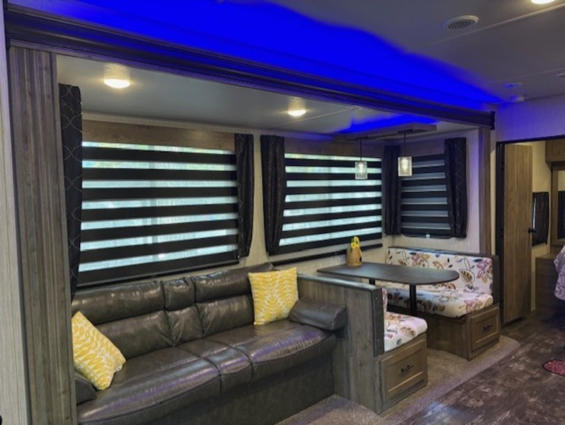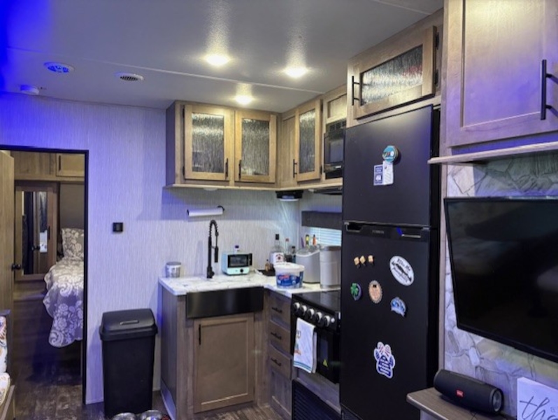 Don't wait another moment to spend time at Sun Retreats Rehoboth Bay with the family in this Cherokee Wolf Pack toy hauler with large outdoor deck! You will love having your own private bedroom up front with a king bed and there are two power bunks for your guests. This model includes plenty of seating space on the jackknife sofa or the booth dinette and the fireplace will make it feel more like home. The chef of the family can cook meals each day on the three burner range or use the handy microwave oven and the full bath. Head out on the boat, to the pool, or to the beach for weekend fun. Clean up from your excursions before coming inside with the outside shower. Inside you will find comfortable conveniences like the real wood cabinet doors and drawers, a large 10.8 cu.ft. 12V refrigerator, a shower skylight, and a drop in cooktop with a glass cover and oven. You will also appreciate having a 35,000 BTU furnace to keep the interior warm. This unit is located at Sun Retreats Rehoboth Bay located along the Guinea Creek with access to Lewes, Rehoboth Beach, Indian River Inlet, and Dewey Beach via boat. Amenities include a seasonal pool, pickle ball court, playground, basketball, laundry, dog park, pavilion, Marina boat slips ($), Seasonal full-service Marina Store with boat fuel, propane, ice, and food, along with season activities. Wi-Fi and cable are included. Seasonal residents only pay for their own electric. If you're interested, please call Amy or Bonnie at 302-945-2000 for a private tour.Features