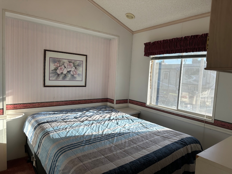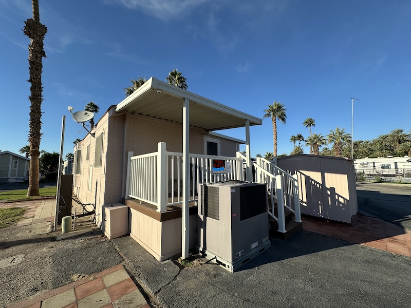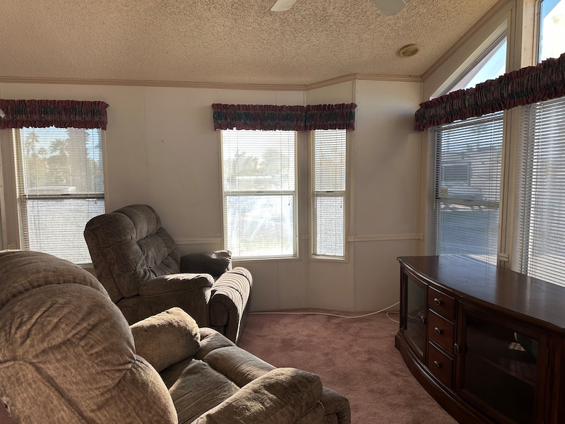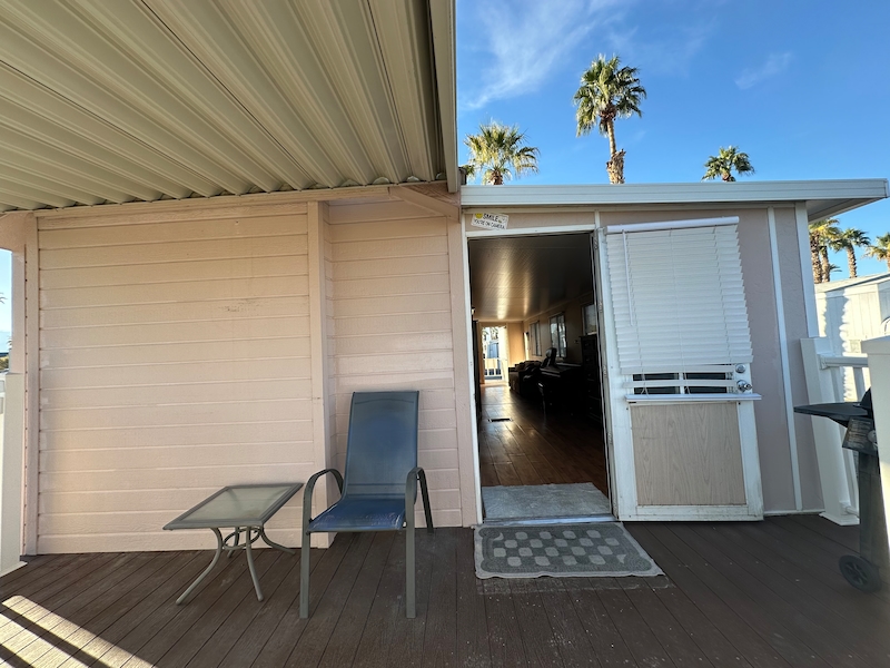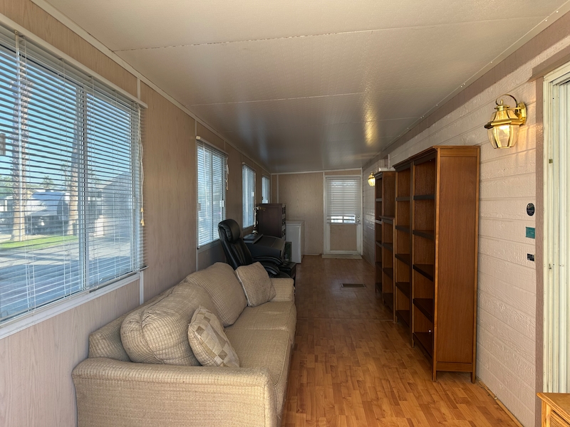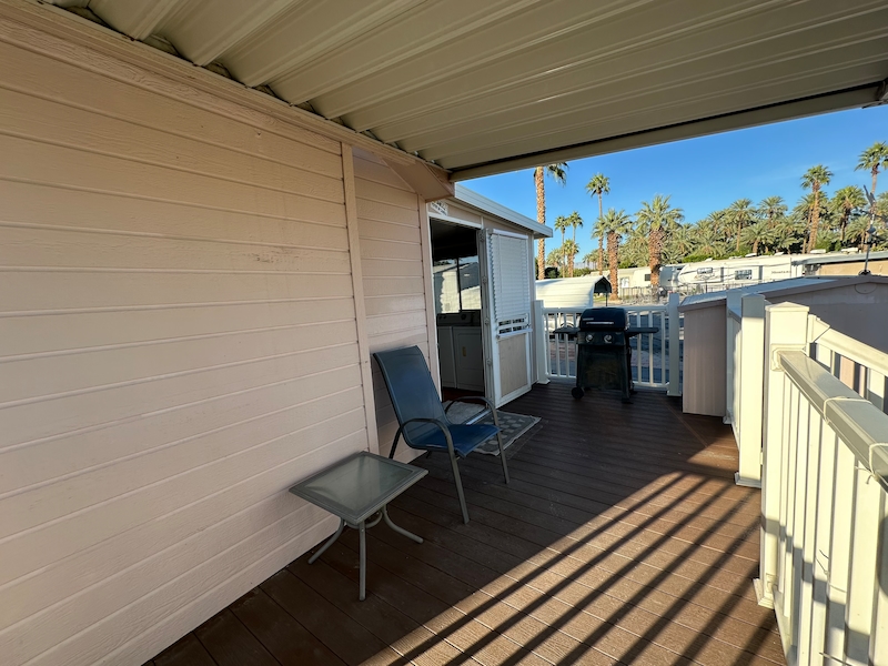 Ready for Full time RV living?? 380 Sq ft park model with a Great Room addition!!! The addition adds 276 square feet of space. What will you use it for??? Playroom, office, den. So many possibilities. This one bedroom and one bath park model home is located in the back half of the property near one of our 3 pools. The air conditioner is huge and is fairly new. Included in the sale are some furnishings, washer and dryer, full size refrigerator, stove, microwave, BBQ and a shed. There is a covered porch at the rear of the property. All reasonable offers will be submitted. This RV park model is located in Indio and is licensed with the California Department of Motor Vehicles. Indian Wells – Sun RV Community is a gated community and has many amenities to enjoy. 3 pools, 2 spas, fitness room, dog park, clubhouse, shuffleboard and more. Indian Wells - Sun RV Community is close to golfing, tennis, shopping and entertainment. Site rent includes water and trash. Annual lease required. Buyer to qualify with community office before purchase.Features