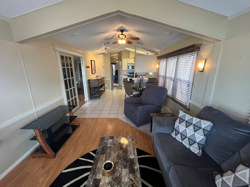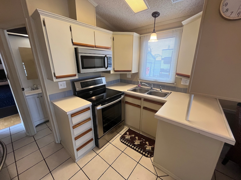 Price Reduced for this spacious park model with 752sf of living space, this home has 1 bedroom 1.5 bathrooms with a covered front porch (8x10) and private covered back porch (11x11). This home has newer stainless steel appliances, wood laminate flooring and tile flooring, roof is in great condition. This charming home has central heat and air and is being sold furnished and is located just steps from the heated pool, billiards hall, library and laundry room. Rainbow Village Largo, a 55+ gated community and offers a dog park, clubhouse, and fitness center. Call today to tour this home 727-536-3545 option #3.Features