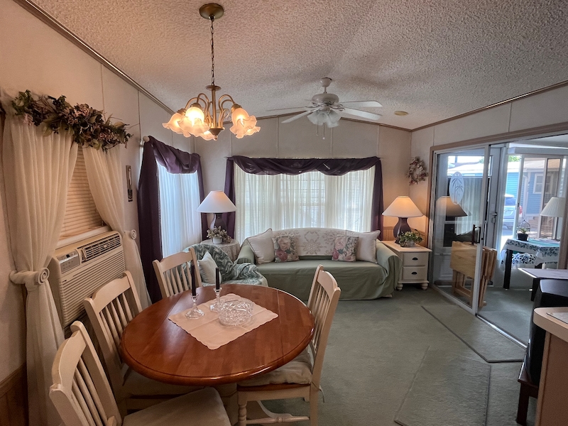 Cozy park model located in a gated 55+ community. Home has new carpet, new windows in all season room, new screens on all windows, washer/dryer hookups, central furnace, window air conditioning, gas stove, newer roof over, extra landscape pavers and is being sold fully furnished including a pull out sofa bed if needed for guest. Home is very clean and well maintained, perfect for year round or seasonal living. This community includes heated pool, billiards hall, library, laundry room, clubhouse, fitness center and dog park. Call Rainbow Village Largo for more information or to schedule a tour today 727-536-3545 option 3Features