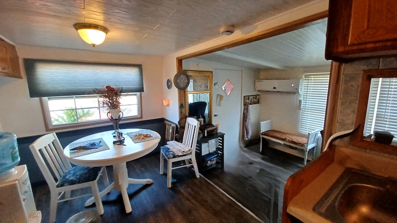 Well-maintained 1-bedroom, 1-bath metal roof home located in the heart of Settler’s Rest, an active 55+ community. Just steps from the clubhouse! Handicap accessible with ramp access, parking for two vehicles, and a rear patio area. Interior features include updated flooring (2 years old), brand-new mini-split system for heating and cooling, and a utility room with washing machine and walk-in shower. The kitchen offers ample counter space, a propane stove, and upgraded appliances—perfect for those who love to cook. Home is being sold furnished. Move-in ready and conveniently located within a vibrant community offering great amenities and social activities.Features