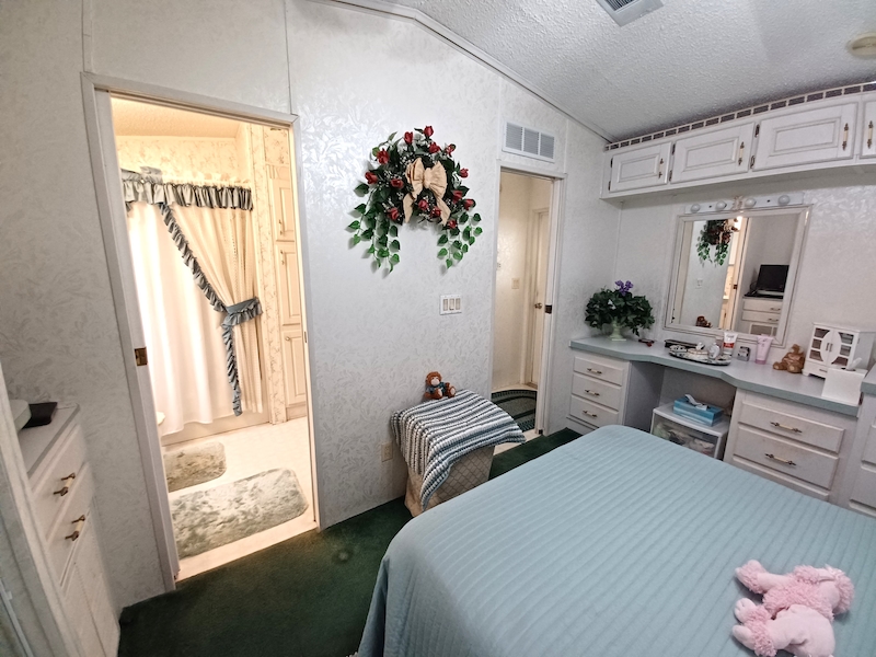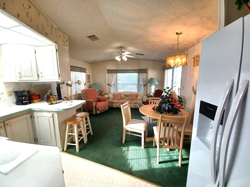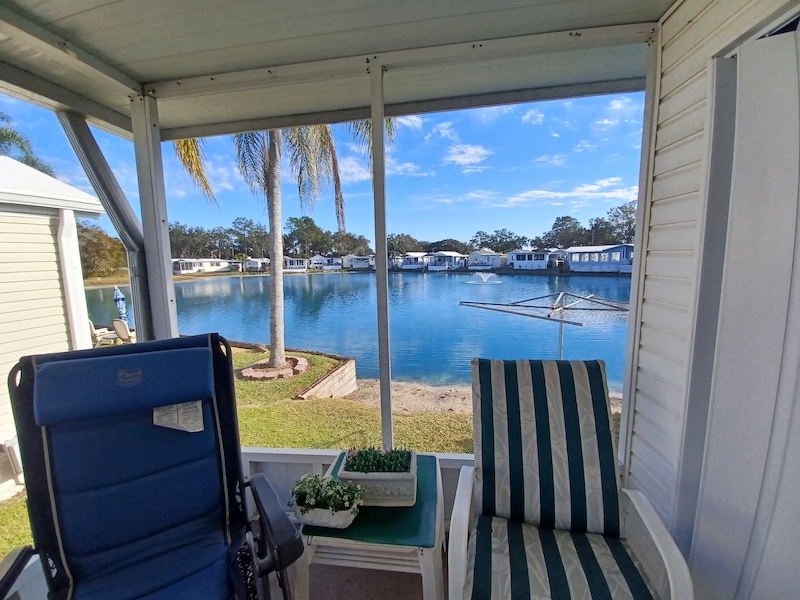 Relax and unwind with beautiful lake views from your screened-in patio! This well-maintained 1-bedroom, 1-bath home offers all-electric appliances, central heating and air, and valuable recent upgrades. A new carport and HVAC ductwork were added in 2024, the refrigerator is only 3 years old, and the roof was re-shingled in 2017. This home is located in beautiful Southern Charm an active 55+ community. The monthly lot rent is $700.00 to include trash, park Wi-Fi, basic lawn maintenance and the use of all amenities and activities in all three of our communities. Be sure to ask to see SOC 414. Act fast—homes like this don’t stay on the market!Features