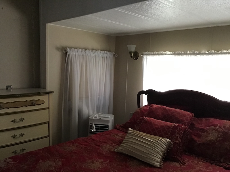 Discover comfort and convenience in this delightful one-bedroom, one-bathroom home, located in the heart of Sweetwater—a lively 55+ community. Once a travel trailer, this home has been expanded with a full-length Florida Room, providing additional living space for relaxing or entertaining. The kitchen features a gas stove, full-size refrigerator, and plenty of cabinet storage. The bedroom accommodates a full or queen-size bed and includes ample closet and storage space. As an added bonus, a golf cart is included—making it easy to explore the community! Don’t miss out on this charming home—Ask to see SWE 063A.Features