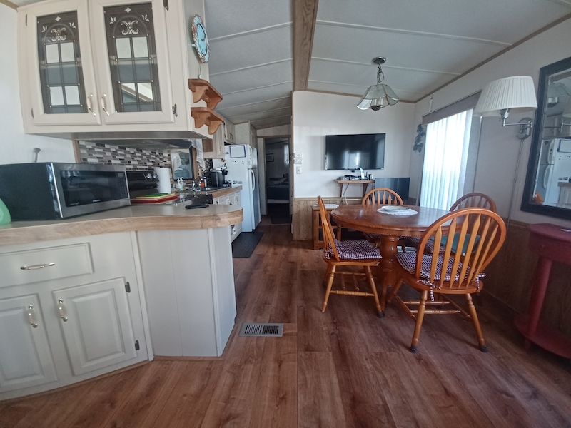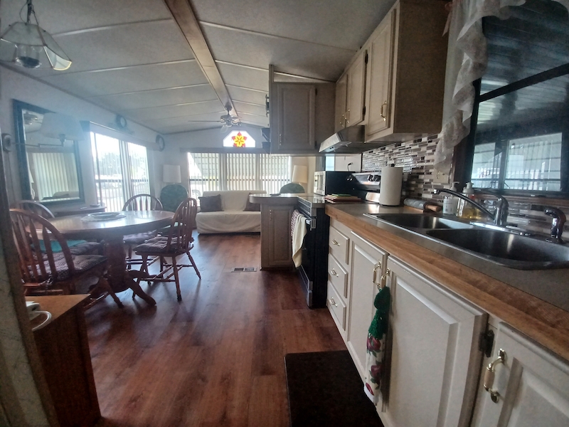 With a little TLC, this 2-bedroom, 1.5-bath home is a great opportunity for a vacation retreat or full-time living. Located in an active 55+ community with Southern charm, it offers plenty of potential. The addition includes a comfortable second living area and a versatile back room that can be used as a bedroom or utility space, complete with a closet, stackable washer and dryer, and half bath. The open floor plan connects the living room to the kitchen and dining area, featuring a new stove and attractive backsplash. Ample storage throughout adds to its appeal.Features