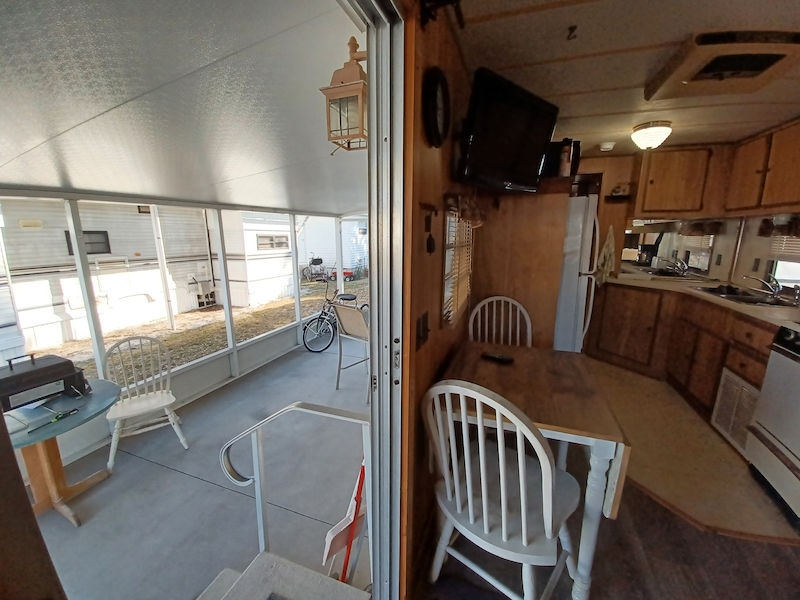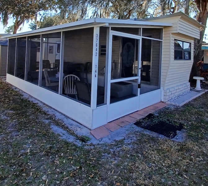 Step Back into the 80’s with This 1983 Park Trailer! This retro gem features a durable metal roof and two fixed slide-outs that add extra living space. Kick back on the spacious 10’ x 24’ screened-in porch, ideal for relaxing evenings and weekend hangs. Inside, you’ll find a propane stove, a 15-gallon water heater (approx. 5 years old), and central heat & air installed just 2 years ago for year-round comfort. The bedroom easily fits a full to queen-size bed, making it both cozy and practical. Vintage charm with modern comfort—ready for its next chapter! Home is located in Sweetwater an active 55+ community.Features