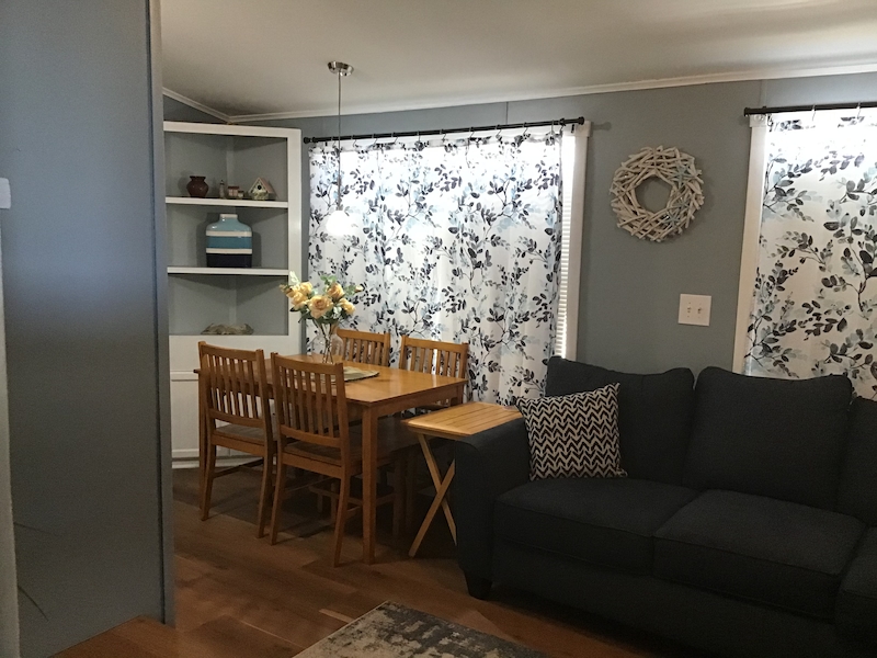 Enjoy Florida’s sunshine from the comfort of your covered front porch in this delightful home, tucked away on a quiet dead-end street. Inside, a spacious room addition nearly doubles the original living area, offering a cozy sitting space that opens into a flexible bonus room—ideal for guests or a home office. The back of the home features a utility room with added storage and a washer. The main living area showcases an open-concept design with a roomy living space, dining area, and kitchen. The kitchen is highlighted by a brand-new oversized gas range and updated countertops. The bathroom offers a comfortable tub/shower combination, while the bedroom easily accommodates a queen-size bed and includes a full wall of closets plus a built-in dresser. Don’t miss this opportunity!Features