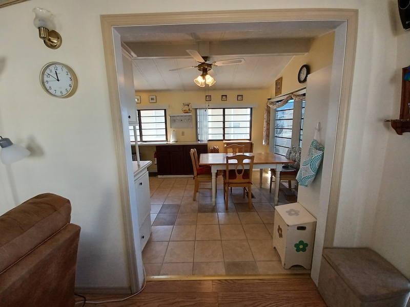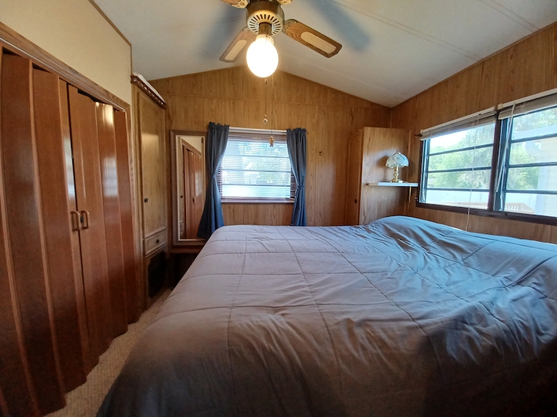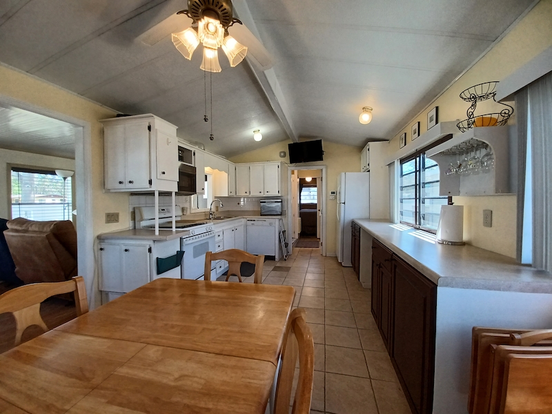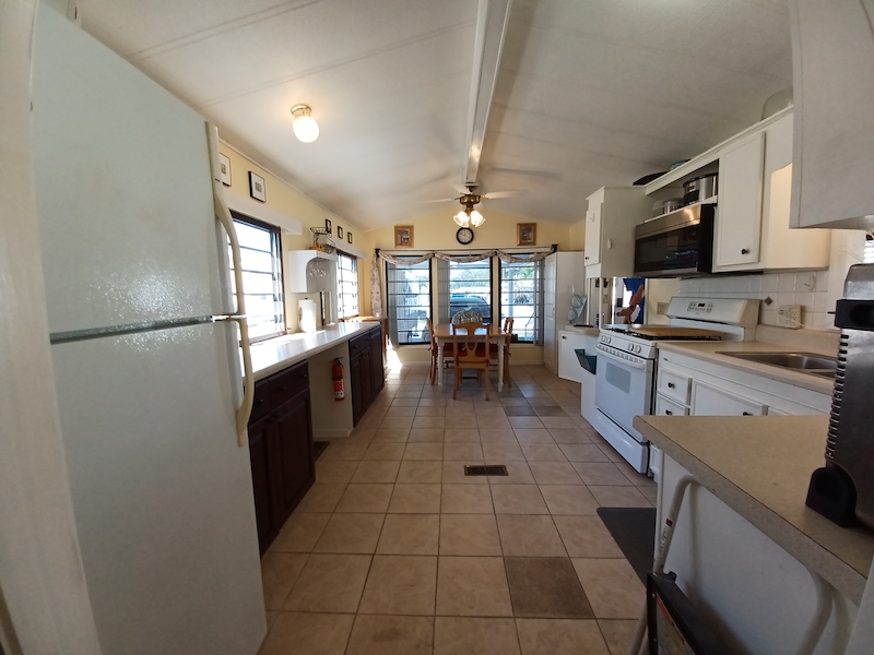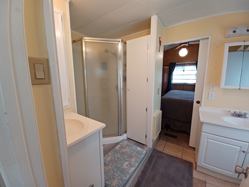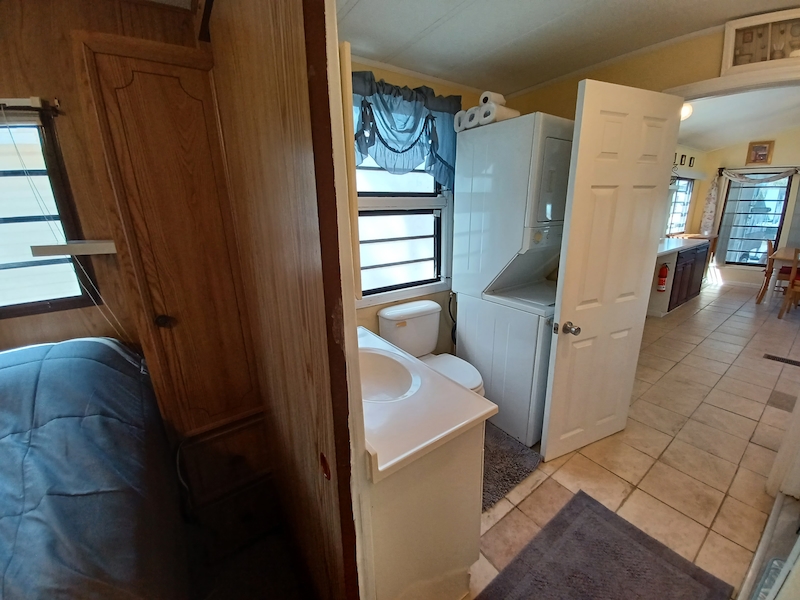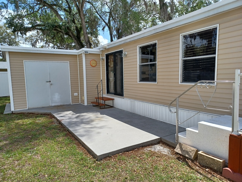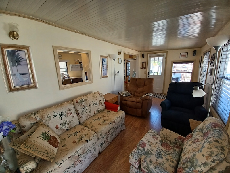 Enjoy Florida living in this charming 2-bedroom, 1.5-bath home with a bright, open layout. The half bath was added in 2018, the deck replaced in 2023, and freshly repainted in 2026. The exterior and roof are cleaned annually for easy upkeep. Features include a propane stove, full-size refrigerator, cozy fireplace, and central heat and A/C. Relax on the inviting front porch with no rear neighbors. Includes a large attached shed and enclosed Florida room for extra space. Fully furnished with a stackable washer and propane dryer—move-in ready!Features