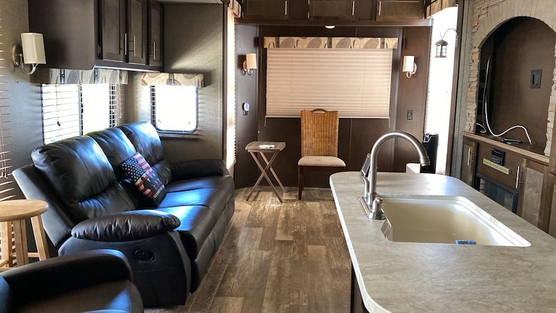 This well-maintained 5th wheel features an enclosed lanai equipped with its own window A/C unit, while the interior boasts efficient mini-split systems to keep the entire space cool and comfortable year‑round. The lanai provides a spacious, versatile extension of the living area, perfect for relaxing or entertaining. Outside, enjoy a lovely sitting area ideal for soaking up peaceful Florida afternoons. This setup offers the perfect blend of indoor comfort and outdoor living. Monthly lot rent is $579 plus utilities.Features