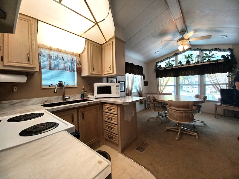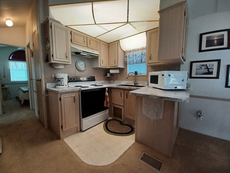 Welcome to your charming 1 bedroom/2 full bathroom retreat in a very active 55+ community in Southern Charm! This delightful home features a front carport, extra parking, and built-in shed for convenience. The spacious addition offers a U-shaped kitchen with a brand-new microwave and electrical appliances perfect for whipping up your favorite meals. The bedroom with queen bed and two full bathrooms (including a walk-in shower) provide comfort and style. This home is furnished and move in ready!Features