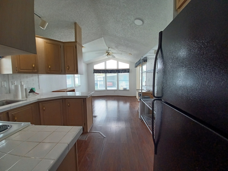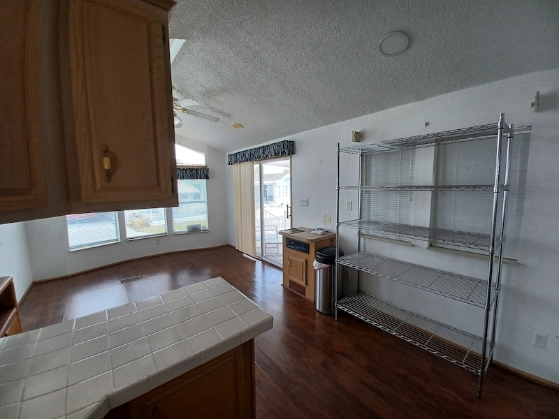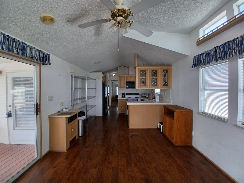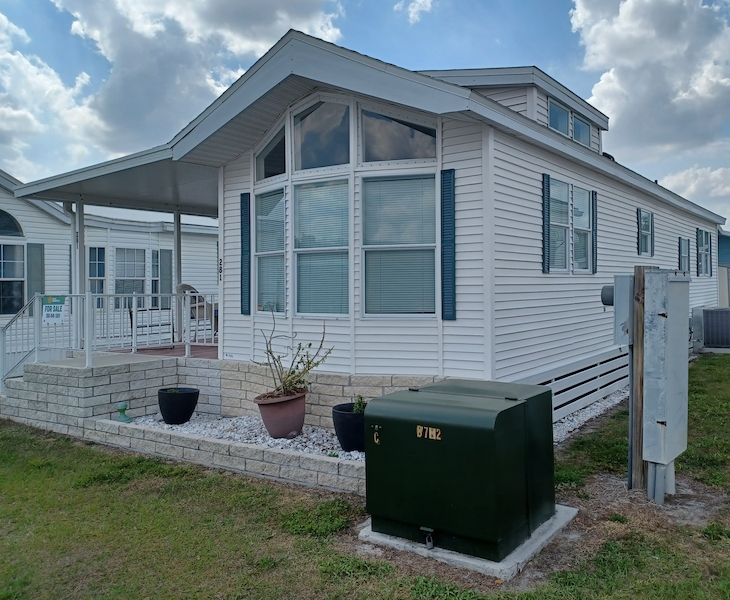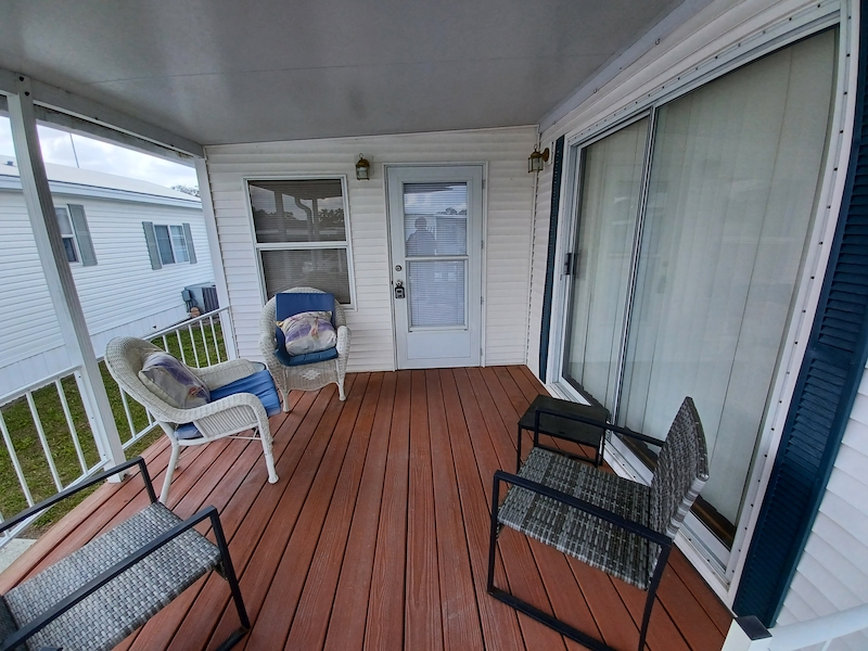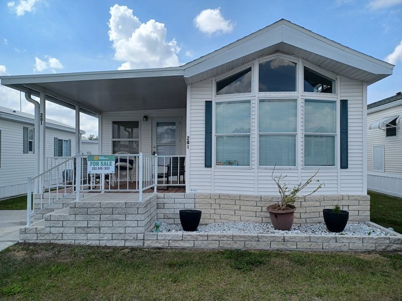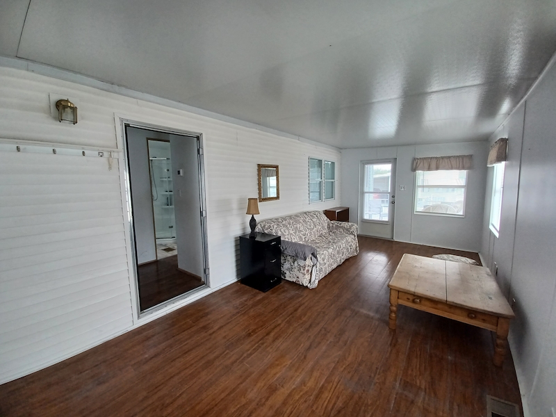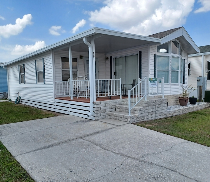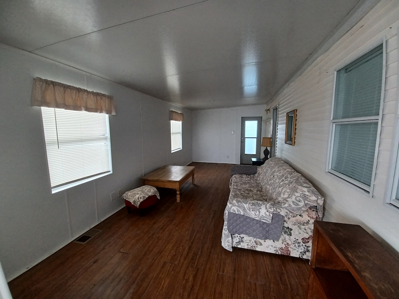 Florida-style 1BR/1BA unfurnished home with a covered front porch. Sliding glass doors open to the main living area, while a separate entry leads to a versatile bonus room—ideal for guests or extra living space. The bathroom features dual access, a walk-in shower, and a skylight. Recent upgrades include a new HVAC (10/24, warranty through 10/2034), new toilet (6/25), new walk-in shower, and new water heater. Plus you can enjoy a shed, which includes a washer and dryer within! Larger than many homes in the park, it offers spacious resort-style living!Features