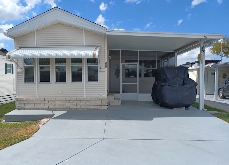 Enjoy the Florida lifestyle in this inviting 1-bedroom, 1-bath home with a durable metal roof and convenient carport. Unwind in the 10x10 screened porch, perfect for year-round sunshine and fresh air. Fully furnished and move-in ready, it includes all appliances. The open layout features a flexible bonus room ideal for a home office, guest space, or second living area. Central heat and air are just 8 years old for added efficiency. Plus, the sale includes a golf cart with new 2025 batteries and a 2026 charger.Features
