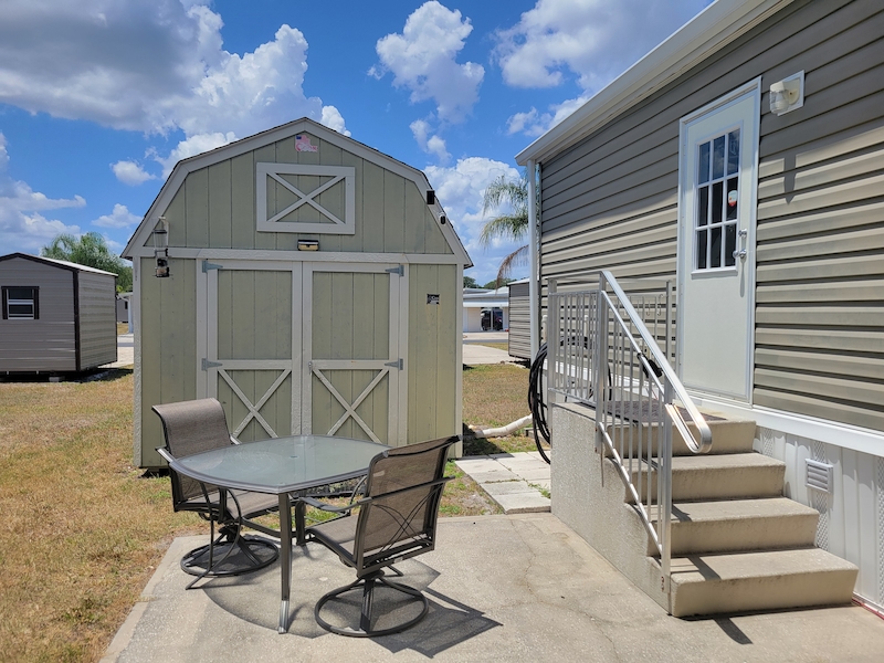 Welcome to this elegant and beautifully updated one-bedroom, one-bath park model home located in a premier 55+ resort community. Designed for comfort and style, this home features tasteful updates throughout and a welcoming interior that’s perfect for relaxed resort living. The kitchen is equipped with newer appliances, all of which are included, making this home truly move-in ready. The well-appointed living space offers both functionality and charm. The bedroom provides a peaceful retreat, while the updated bathroom adds a touch of modern convenience. Outside, you’ll appreciate the large storage shed, ideal for extra belongings, hobbies, or seasonal items—an added bonus. Whether you’re looking for a winter getaway or full-time resort living, this home offers the perfect blend of elegance, comfort, and practicality in a sought-after 55+ resort community.Features