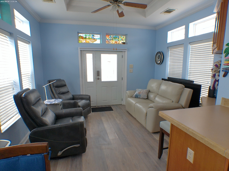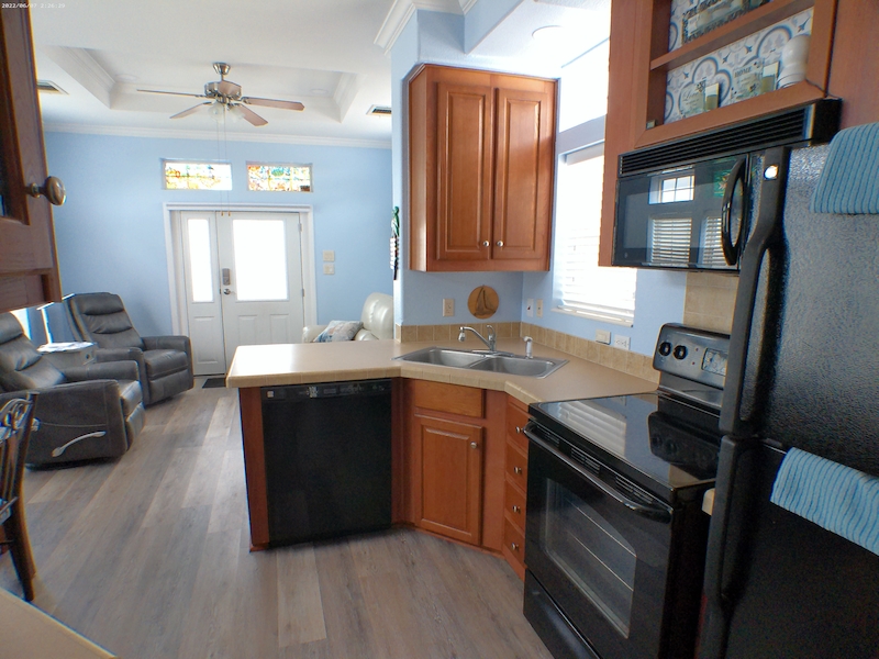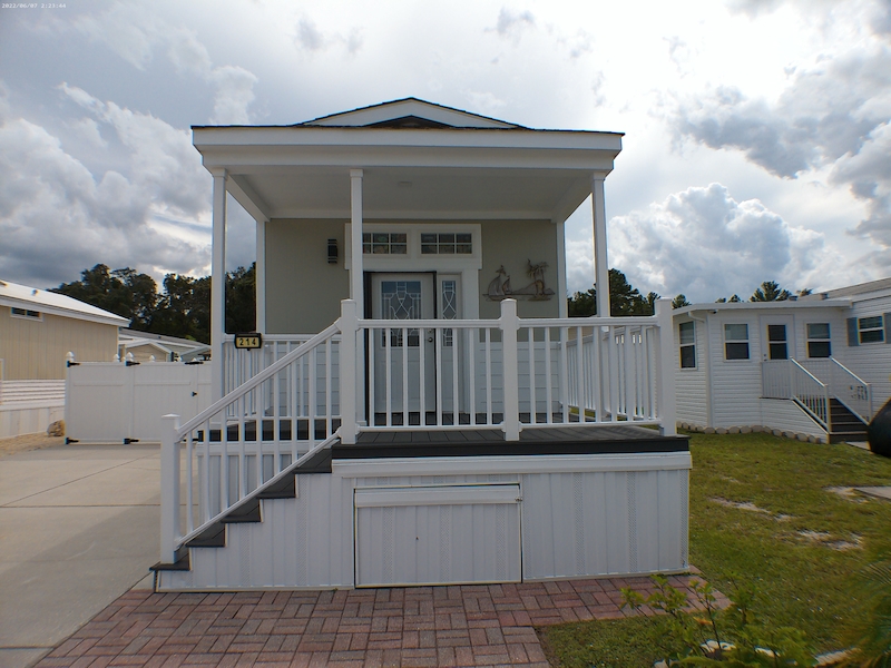 Take a tour of the cozy coastal park model located in our all age community. This one bedroom and one bath is one of a kind with coastal decor, lots of storage, fully furnished, black appliances, full size washer and dryer, and lots of windows to enjoy the sunshine. The kitchen has lots of storage for all your needs. Enjoy the sunset from your front covered porch or entertain in your side yard under your gazebo.Features