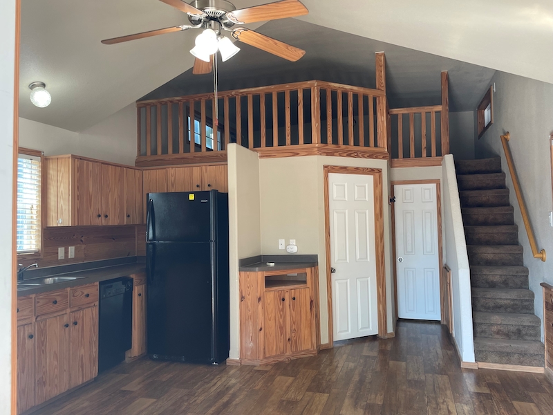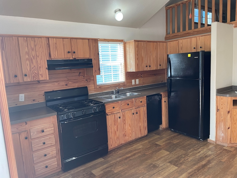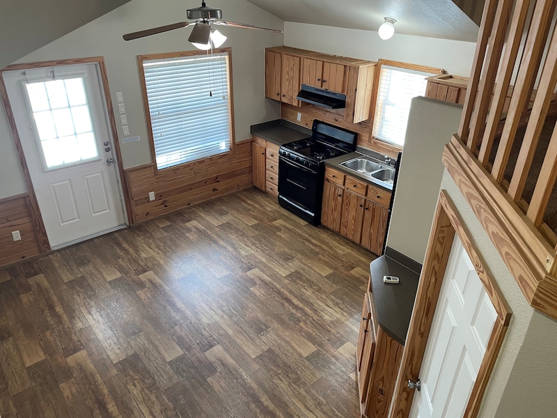 Charming 390 sq. ft. tiny home in a gated New Braunfels resort! This one-bedroom, one-bath home features an open-concept living room and kitchen, plus a unique 4-ft loft above the bedroom with steps leading up—perfect for storage, guests, or a cozy retreat. Enjoy evenings on the covered porch and take advantage of the resort’s secure setting, great amenities and prime location near all the recreation and charm New Braunfels has to offer.Features