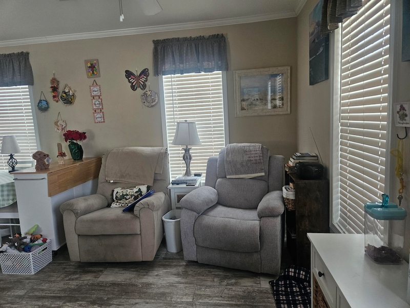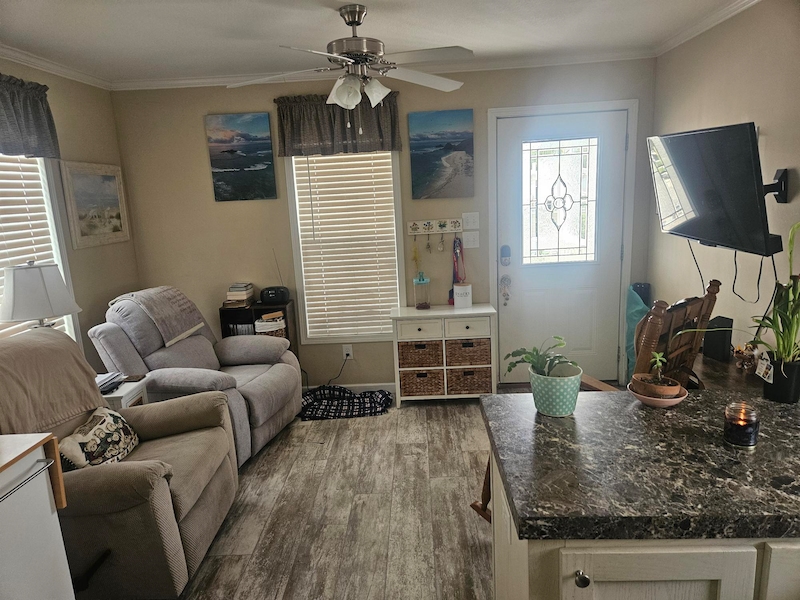 Enjoy the perfect blend of comfort and resort‑style living with a full calendar of activities and events designed for an active, social lifestyle. This 2017 Park Model is located on a desirable back lot, offering added outdoor privacy—an ideal setting to relax and unwind. The home features a screened‑in porch, perfect for enjoying beautiful Florida evenings. Partially furnished and move‑in ready, it includes all kitchen appliances, dishes, pots and pans, as well as a kitchen table with chairs and a comfortable recliner. This inviting home is a wonderful opportunity to enjoy easy living in a vibrant, friendly community.Features