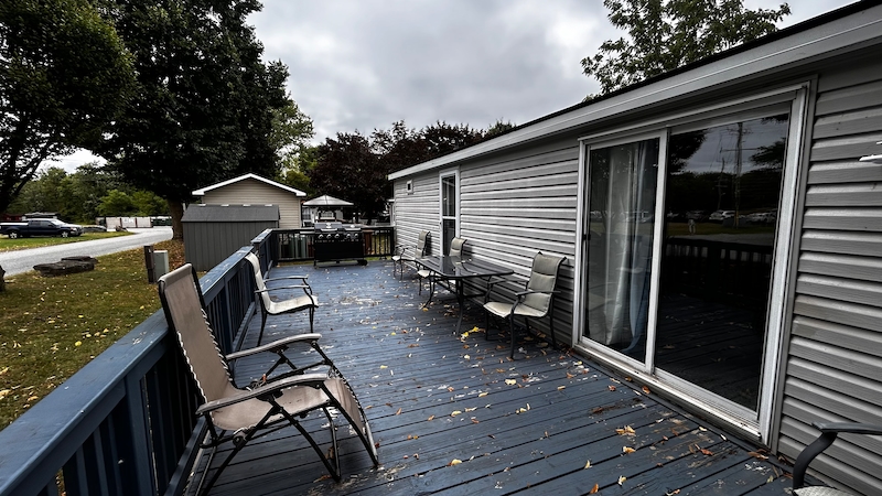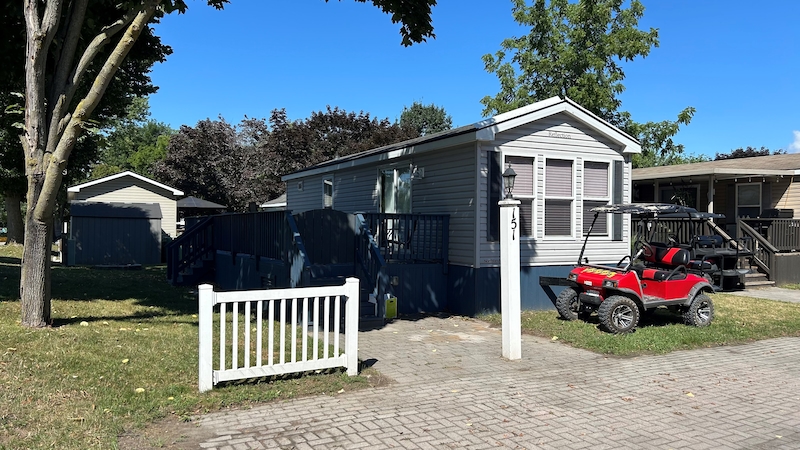 Welcome to Forest Grove #151, an inviting 2-bedroom cottage that offers both comfort and convenience in one of the most sought-after areas of Sherkston Shores. This charming retreat is perfectly located just steps from the Family Funplex, shopping, restaurant, and the water park, with the beach only a short golf cart ride away. Inside, you’ll find a bright and cozy living space featuring an open-concept layout with a spacious sectional for lounging, a modern kitchen with plenty of cabinet storage, and a comfortable dining area. The two bedrooms provide flexible accommodations, with built-in shelving and cabinets that maximize space for family or guests. A full bathroom and functional finishes throughout make this an easy-to-maintain getaway. Outside, the large deck is ideal for relaxing or entertaining, complete with room for outdoor dining and summer barbecues, while the included shed adds extra storage. The cottage sits on a generous corner lot with mature trees, offering both shade and privacy. Whether you’re looking for your first vacation home, a seasonal escape, or a smart investment in resort living, Forest Grove 151 delivers great value at an amazing starter price. Don’t miss this opportunity to enjoy everything Sherkston Shores has to offer from the comfort of your own cottage—schedule a viewing today and start making memories by the beach.Features