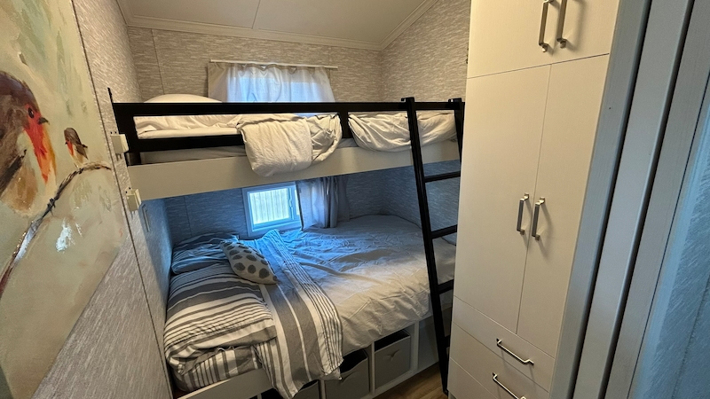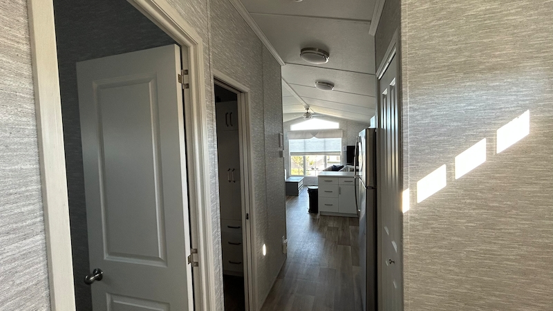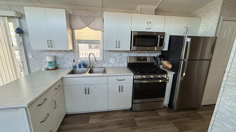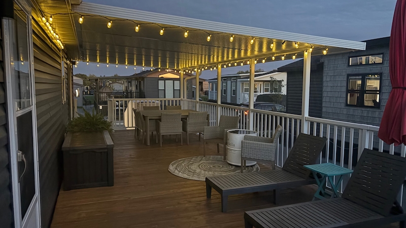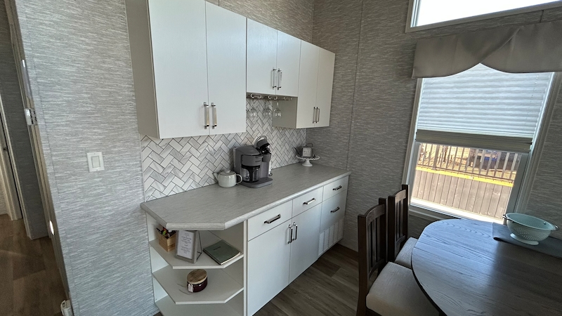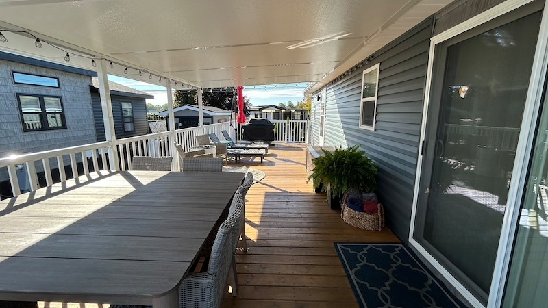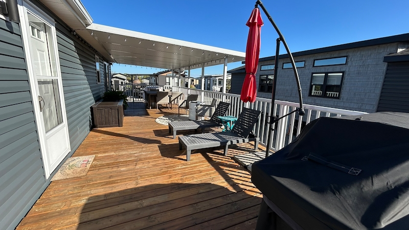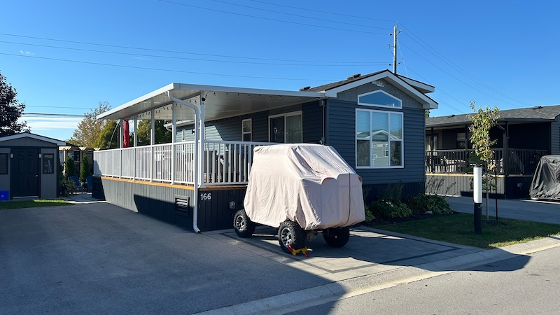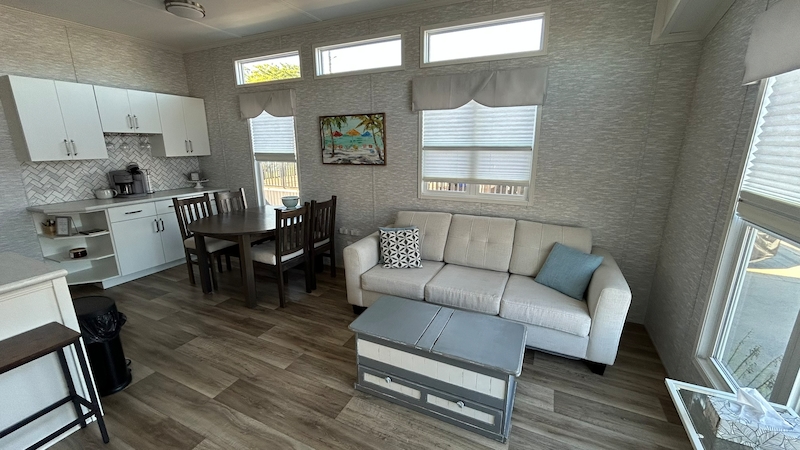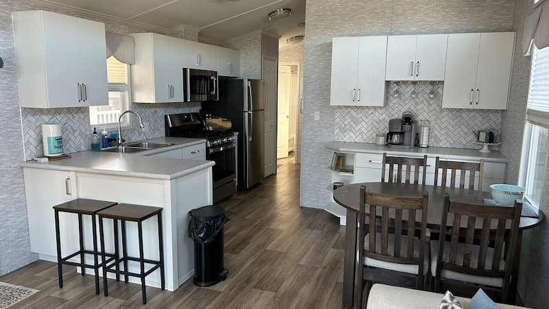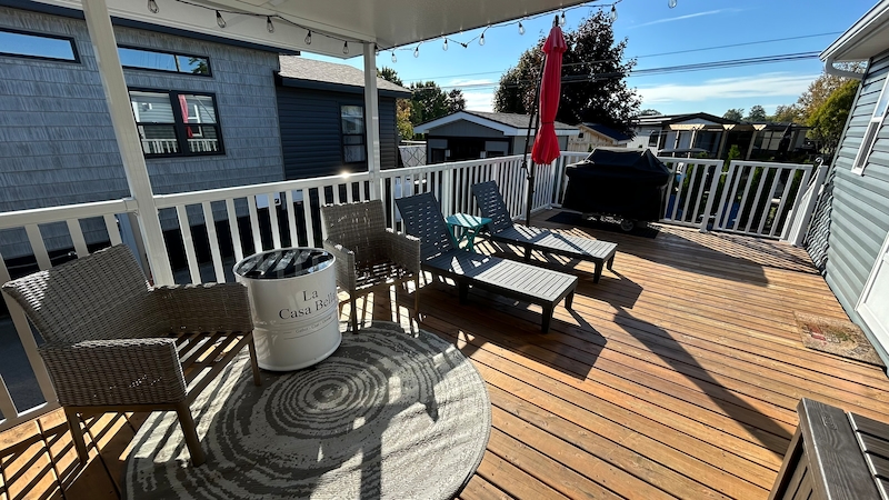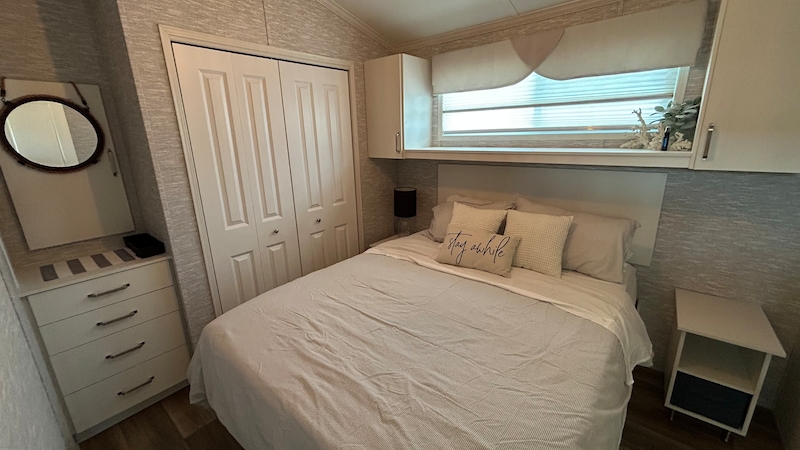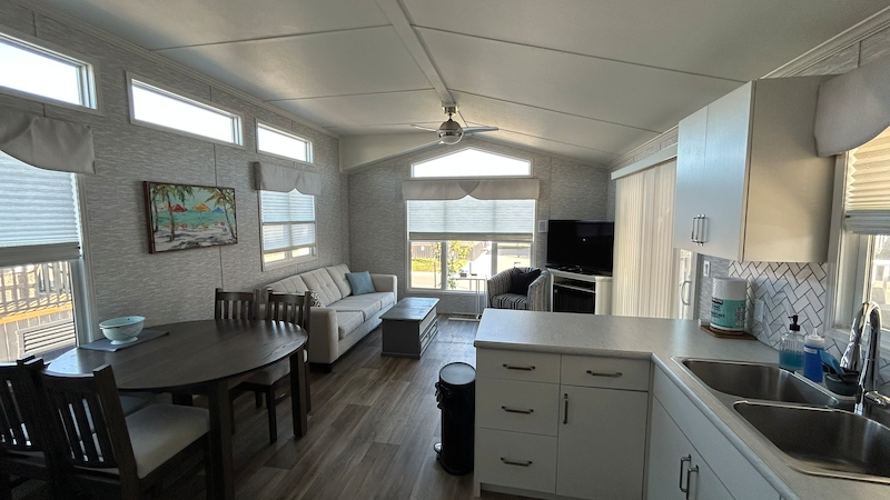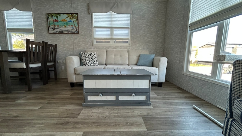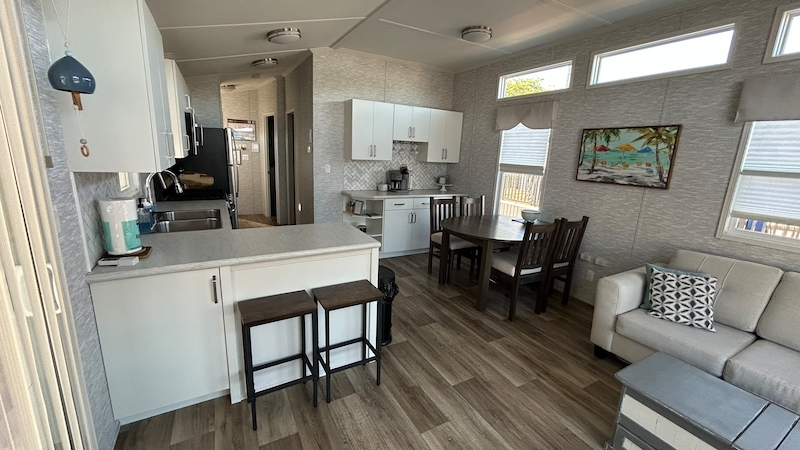Welcome to QMD166! This 2022, 2 bed - 1 bath cottage offers comfort, style and space to unwind. This 14' wide model features high ceilings for a bright open feel. The covered deck is perfect for relaxing or entertaining in any weather! The private firepit area is ideal for cozy nights under the stars. Modern, well maintained and priced to move, don't miss this opportunity! Contact the sales team to schedule a viewing.Features