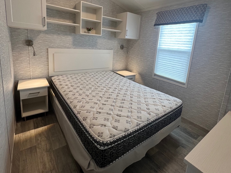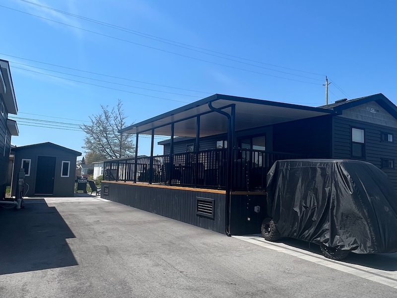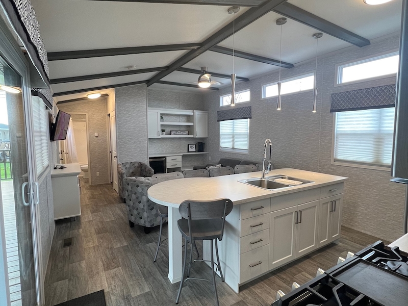 Welcome to Quarry Meadows #177! This newer vacation home is the popular Onyx model, with 3 bedroom, 1 bath and an open concept living and dining room. White cabinetry is bright and modern inside with ceiling beam accents, new stainless steel appliances, lots of storage, a large kitchen island and a fireplace. This cottage is MOVE-IN READY! Outside the large deck is partially covered, and steps down to the rear patio, firepit and large shed. Walking distance to the new owner’s pool and clubhouse. Contact the Sherkston sales team today to view this vacation home!Features