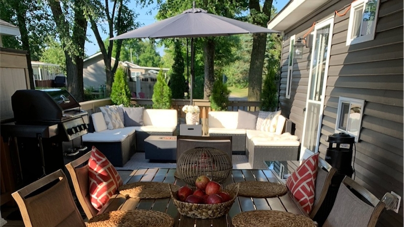 This Like New, 2018 General Coach Florence is located centrally within the Resort. A short drive from the main complex and both Lake Erie Beaches, this 3 bedroom (family-ready layout) 14’ wide Vacation Cottage is ready to move in and enjoy! At approx. 504 sqft you can sleep 6 VERY comfortably and can push that with the sleeper sofa in the living room for extra guests or family members. The unit comes with a Nest thermostat and reverse osmosis filtration system. The partially covered deck offers shade and cover from the rain which is a great spot to enjoy family dinners around the dining set for 6. While the rest of huge deck offers sun/shade for relaxing on a full conversation set and bbq’ing on the Broil King BBQ included in the purchase! Bonus Features: • Nest thermostat • Outdoor dining set (6 seats + umbrella) • Full conversation patio set + modern propane fire table • New lighting fixtures • New toilet Contact the Sales Centre to set up a viewing today!Features